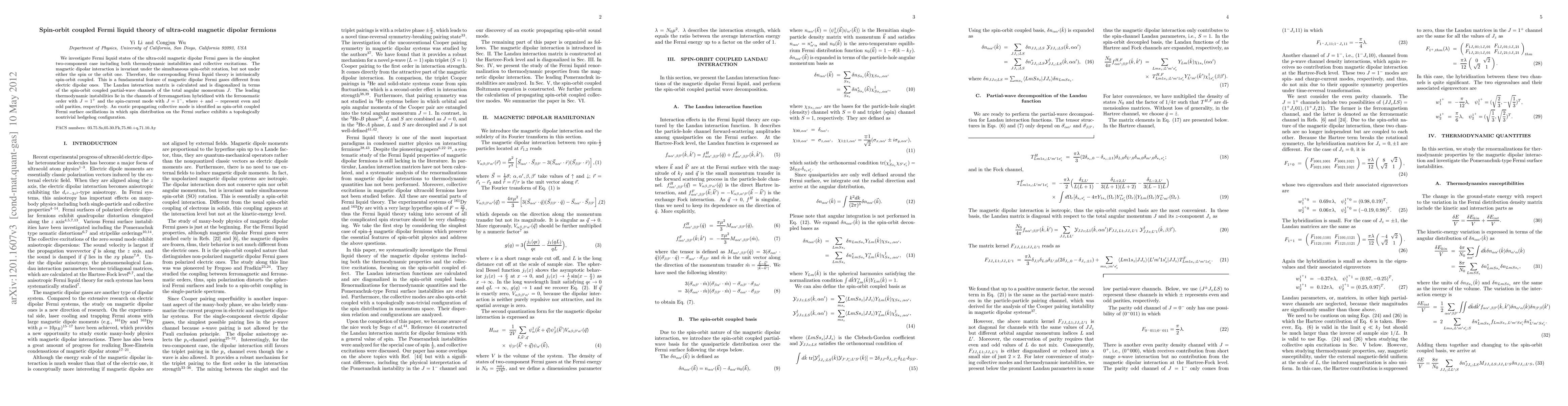 This research develops a spin-orbit coupled Fermi liquid theory for ultra-cold magnetic dipolar Fermi gases, revealing fundamental thermodynamic instabilities and exotic collective modes such as spin-orbit coupled Fermi surface oscillations with a topologically nontrivial hedgehog configuration.