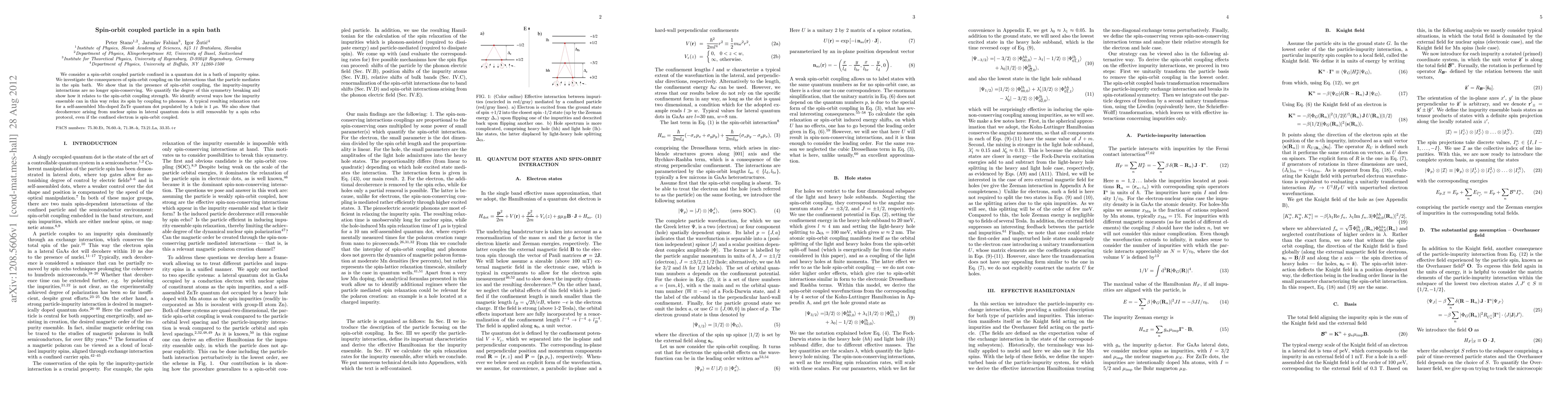 We consider a spin-orbit coupled particle confined in a quantum dot in a bath of impurity spins. We investigate the consequences of spin-orbit coupling on the interactions that the particle mediates in the spin bath. We show that in the presence of spin-orbit coupling, the impurity-impurity interactions are no longer spin-conserving. We quantify the degree of this symmetry breaking and show how it relates to the spin-orbit coupling strength. We identify several ways how the impurity ensemble can in this way relax its spin by coupling to phonons. A typical resulting relaxation rate for a self-assembled Mn-doped ZnTe quantum dot populated by a hole is 1 $\mu$s. We also show that decoherence arising from nuclear spins in lateral quantum dots is still removable by a spin echo protocol, even if the confined electron is spin-orbit coupled.