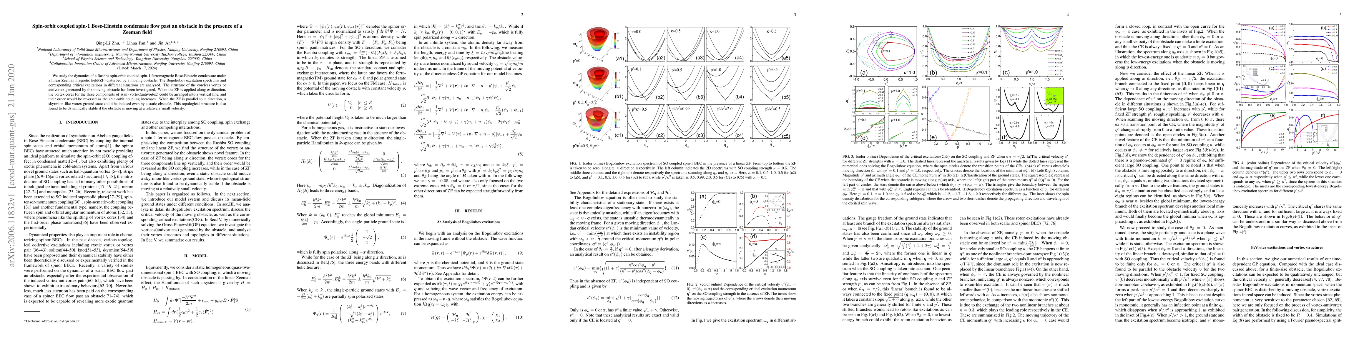 We study the dynamics of a Rashba spin-orbit coupled spin-1 ferromagnetic Bose-Einstein condensate under a linear Zeeman magnetic field(ZF) disturbed by a moving obstacle. The Bogoliubov excitation spectrums and corresponding critical excitations in different situations are analyzed. The structure of the coreless vortex or antivortex generated by the moving obstacle has been investigated. When the ZF is applied along x direction, the vortex cores for the three components of a(an) vortex(antivortex) could be arranged into a vertical line, and their order would be reversed as the spin-orbit coupling increases. When the ZF is parallel to z direction, a skyrmion-like vortex ground state could be induced even by a static obstacle. This topological structure is also found to be dynamically stable if the obstacle is moving at a relatively small velocity.