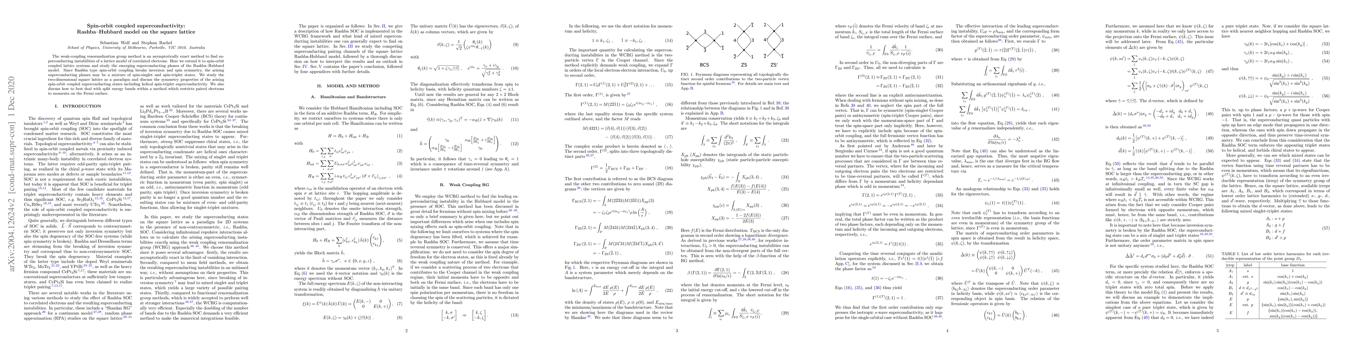 The paper presents an implementation of Rashba spin-orbit coupling into the weak-coupling renormalization group framework, allowing for the study of non-centrosymmetric superconducting states with broken spin symmetry.