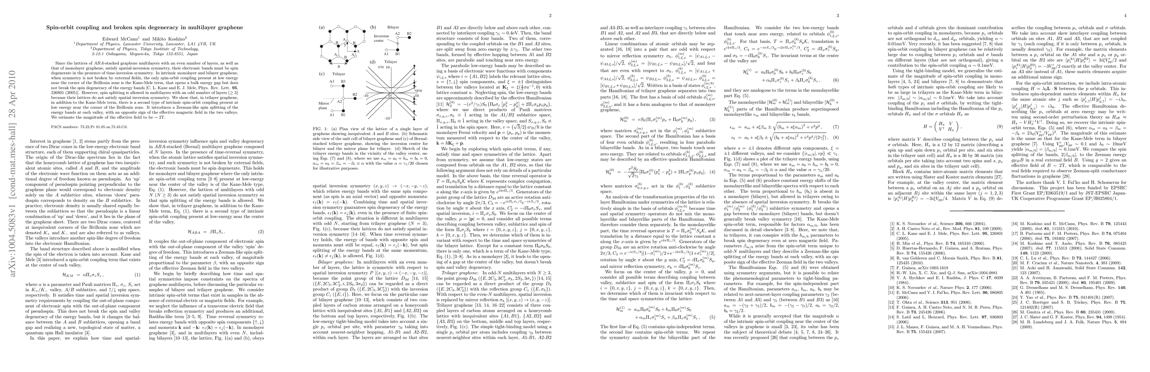 This paper investigates spin-orbit coupling in multilayer graphene, revealing that trilayer graphene exhibits an additional intrinsic spin-orbit interaction beyond the Kane-Mele term, leading to a Zeeman-like spin splitting with an effective magnetic field of approximately 2 Tesla. This effect arises due to the broken spatial inversion symmetry in multilayers with an odd number of layers.