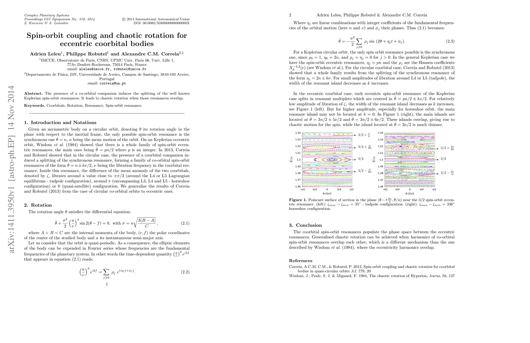 Summary: This study explores how a co-orbital companion alters Keplerian spin-orbit resonances, resulting in chaotic rotation when these resonances overlap, highlighting the dynamics of eccentric coorbital bodies.