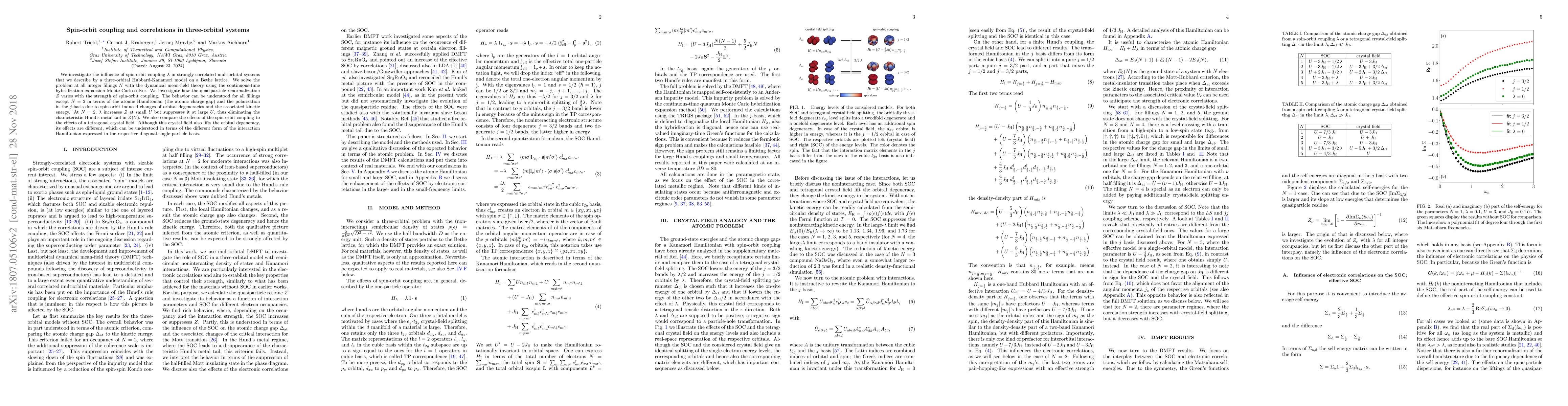 Researchers studied how spin-orbit coupling affects behavior in strongly correlated multiorbital systems, finding it varies with strength of coupling and alters quasiparticle renormalization at certain fillings.