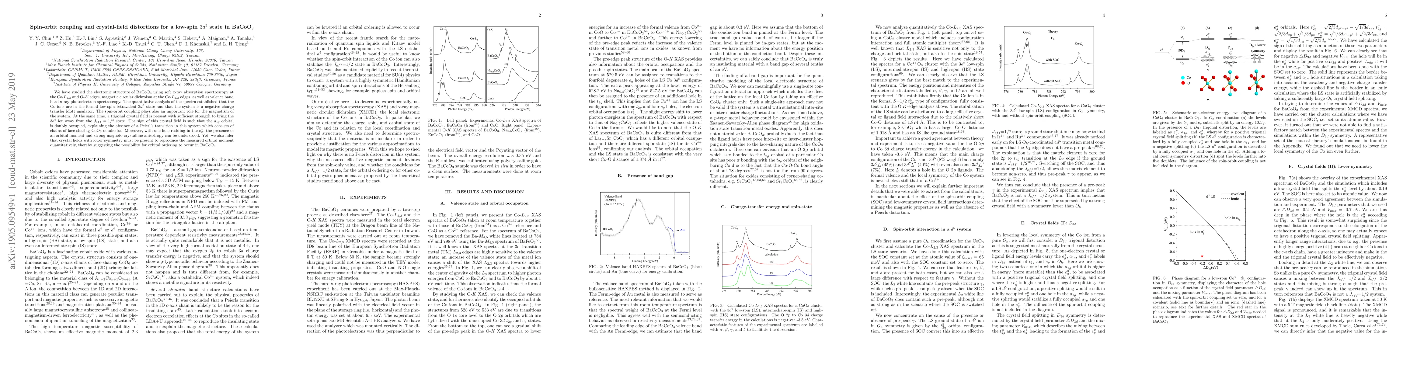 Researchers used various spectroscopic techniques to study BaCoO3, finding that it exhibits a low-spin 3d^5 state with significant spin-orbit coupling and crystal-field distortions, leading to Mott insulator behavior and potential for orbital ordering.