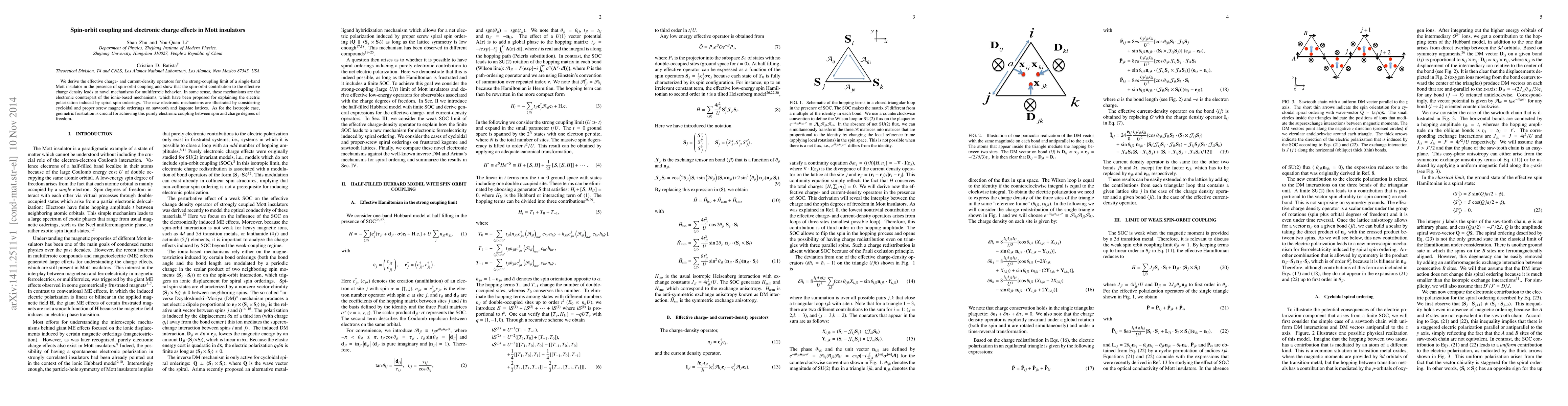 We derive the effective charge- and current-density operators for the strong-coupling limit of a single-band Mott insulator in the presence of spin-orbit coupling and show that the spin-orbit contribution to the effective charge density leads to novel mechanisms for multiferroic behavior. In some sense, these mechanisms are the electronic counterpart of the ionic-based mechanisms, which have been proposed for explaining the electric polarization induced by spiral spin orderings. The new electronic mechanisms are illustrated by considering cycloidal and proper screw magnetic orderings on sawtooth and kagome lattices. As for the isotropic case, geometric frustration is crucial for achieving this purely electronic coupling between spin and charge degrees of freedom.