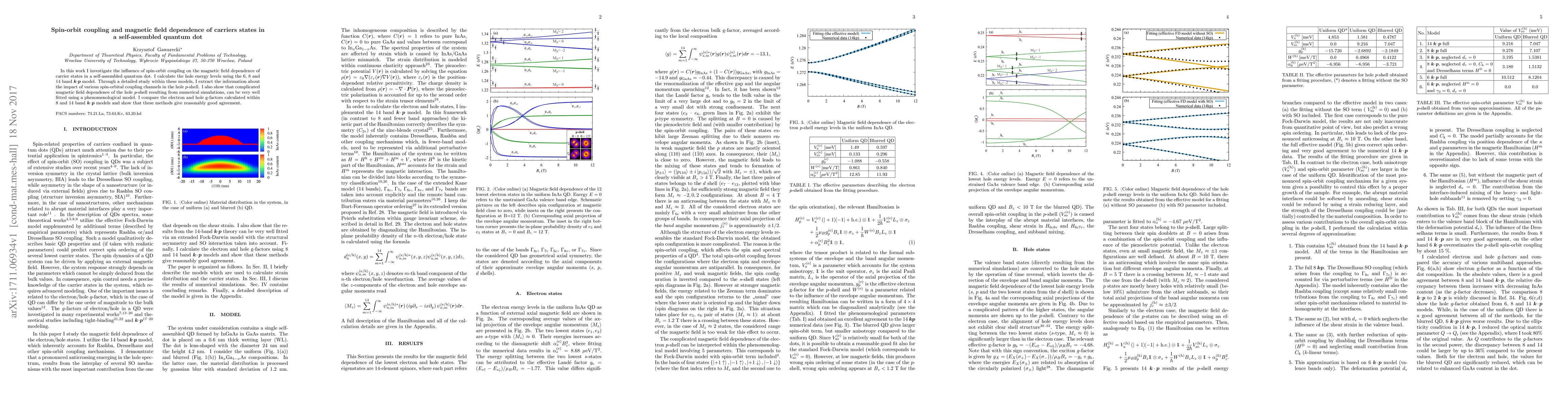 In this work I investigate the influence of spin-orbit coupling on the magnetic field dependence of carrier states in a self-assembled quantum dot. I calculate the hole energy levels using the 6, 8 and 14 band k.p model. Through a detailed study within these models, I extract the information about the impact of various spin-orbital coupling channels in the hole p-shell. I also show that complicated magnetic field dependence of the hole p-shell resulting from numerical simulations, can be very well fitted using a phenomenological model. I compare the electron and hole g-factors calculated within 8 and 14 band k.p models and show that these methods give reasonably good agreement.