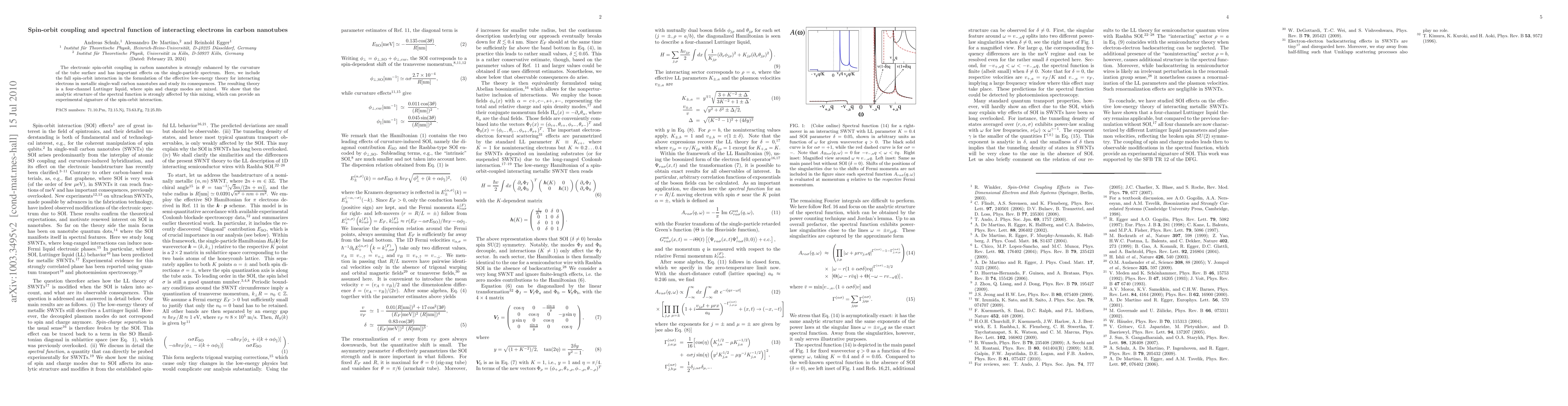 This paper investigates the enhanced spin-orbit coupling in carbon nanotubes due to their curvature, formulating an effective theory for interacting electrons. The theory reveals a four-channel Luttinger liquid, demonstrating that the spectral function's analytic structure is significantly altered by the spin-charge coupling, offering a potential experimental indicator.