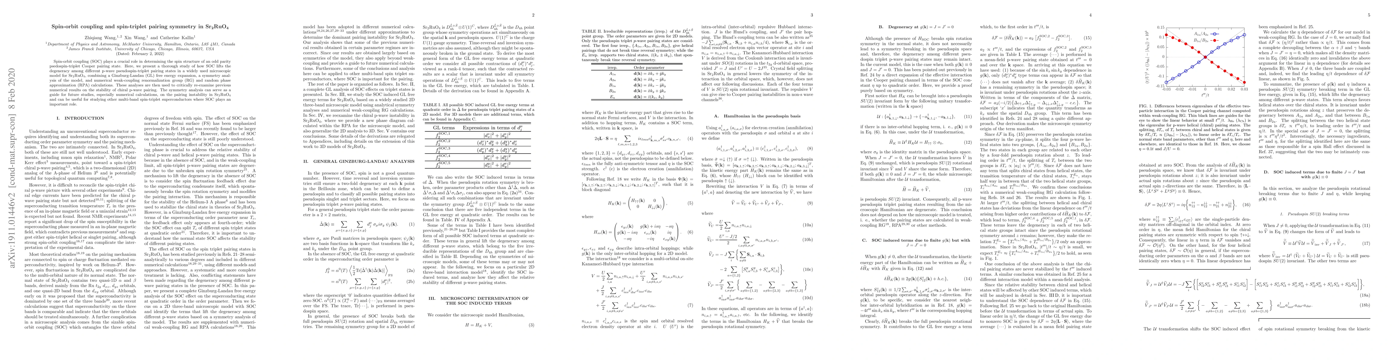 This paper investigates the impact of spin-orbit coupling on spin-triplet pairing symmetry in $\mathrm{Sr_2 Ru O_4}$, employing a combination of Ginzburg-Landau theory, symmetry analysis, and numerical calculations to lift the degeneracy among p-wave pseudospin-triplet pairing states. The findings provide insights into the stability of chiral p-wave pairing and guide future studies on pairing instabilities in multi-band spin-triplet superconductors.