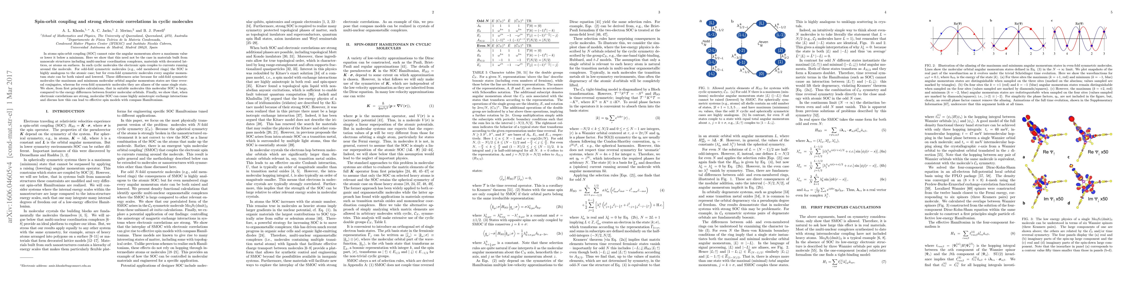 This paper explores how spin-orbit coupling (SOC) behaves differently in cyclic molecules compared to atoms, revealing that in even-fold symmetric molecules, SOC can raise and lower angular momentum states. It also discusses the implications of strong electronic correlations leading to anisotropic exchange interactions and effective spin models.