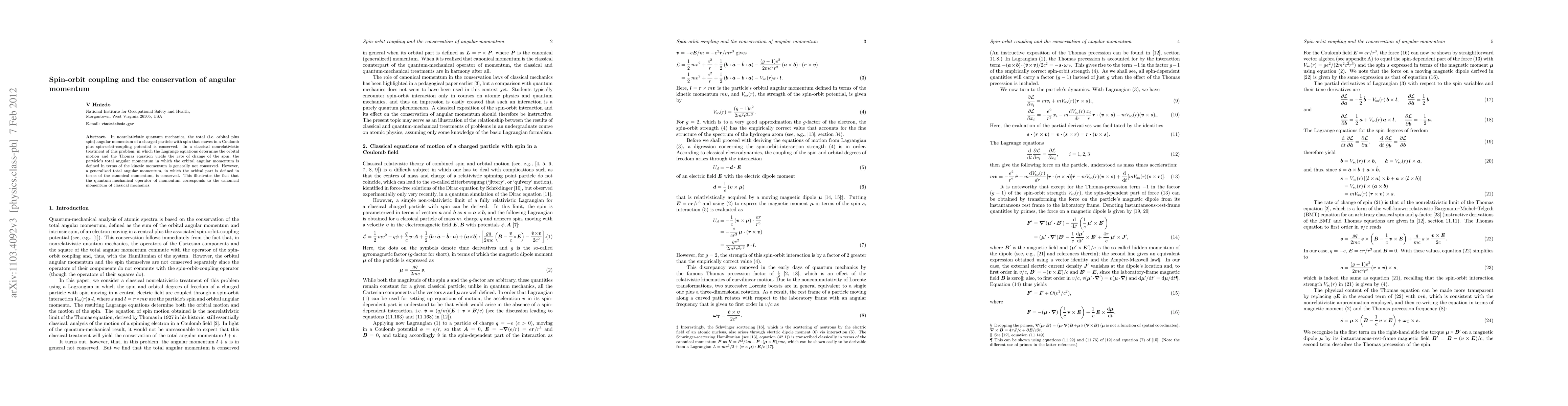 In nonrelativistic quantum mechanics, the total (i.e. orbital plus spin) angular momentum of a charged particle with spin that moves in a Coulomb plus spin-orbit-coupling potential is conserved. In a classical nonrelativistic treatment of this problem, in which the Lagrange equations determine the orbital motion and the Thomas equation yields the rate of change of the spin, the particle's total angular momentum in which the orbital angular momentum is defined in terms of the kinetic momentum is generally not conserved. However, a generalized total angular momentum, in which the orbital part is defined in terms of the canonical momentum, is conserved. This illustrates the fact that the quantum-mechanical operator of momentum corresponds to the canonical momentum of classical mechanics.