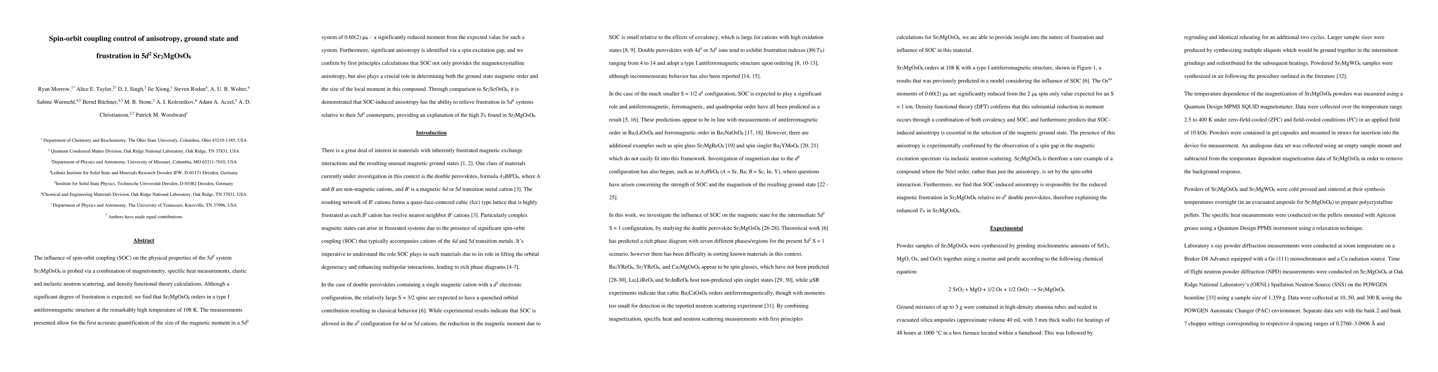 The influence of spin-orbit coupling (SOC) on the physical properties of the 5d2 system Sr2MgOsO6 is probed via a combination of magnetometry, specific heat measurements, elastic and inelastic neutron scattering, and density functional theory calculations. Although a significant degree of frustration is expected, we find that Sr2MgOsO6 orders in a type I antiferromagnetic structure at the remarkably high temperature of 108 K. The measurements presented allow for the first accurate quantification of the size of the magnetic moment in a 5d2 system of 0.60(2) muB - a significantly reduced moment from the expected value for such a system. Furthermore, significant anisotropy is identified via a spin excitation gap, and we confirm by first principles calculations that SOC not only provides the magnetocrystalline anisotropy, but also plays a crucial role in determining both the ground state magnetic order and the size of the local moment in this compound. Through comparison to Sr2ScOsO6, it is demonstrated that SOC-induced anisotropy has the ability to relieve frustration in 5d2 systems relative to their 5d3 counterparts, providing an explanation of the high TN found in Sr2MgOsO6.