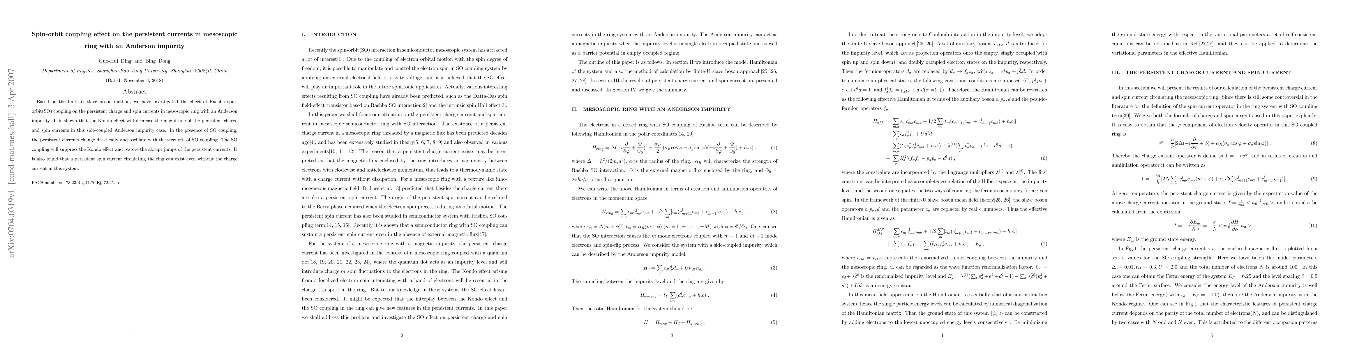 This research investigates how Rashba spin-orbit coupling influences persistent charge and spin currents in a mesoscopic ring with an Anderson impurity, revealing that the Kondo effect reduces these currents. Spin-orbit coupling induces oscillations and restores jumps in persistent currents, while also enabling a persistent spin current to circulate without a charge current.