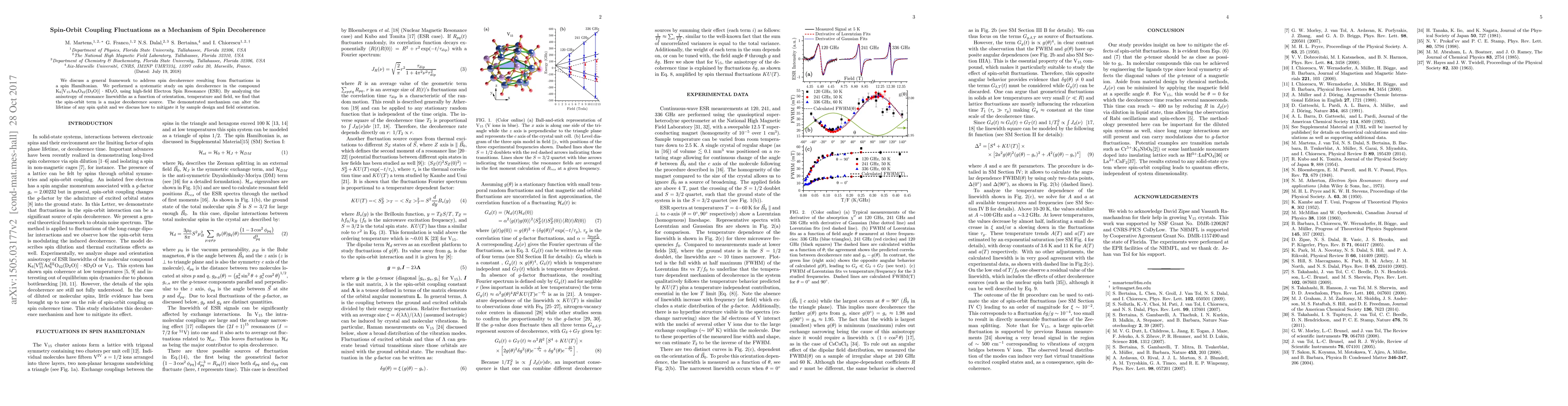 This research investigates spin decoherence in K6[V15As6O42(D2O)] u2026 8D2O using high-field Electron Spin Resonance (ESR). The study reveals that fluctuations in the spin-orbit term significantly contribute to spin decoherence, impacting any spin qubit's lifetime. Mitigation strategies via sample design and field orientation are discussed.