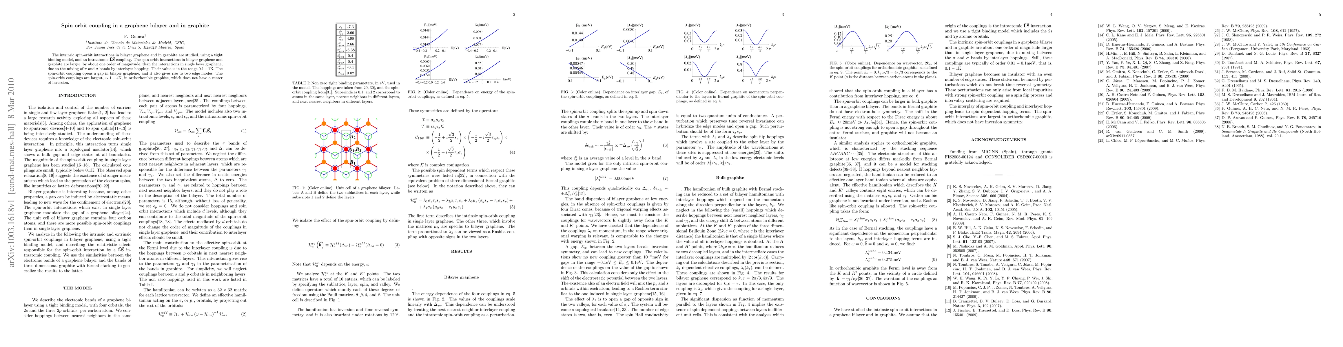 This paper investigates spin-orbit coupling in bilayer graphene and graphite using a tight binding model, finding it to be an order of magnitude larger than in single-layer graphene due to interlayer band mixing, resulting in a gap opening and edge modes. Orthorhombic graphite shows the largest spin-orbit coupling, up to 4K, lacking a center of inversion.