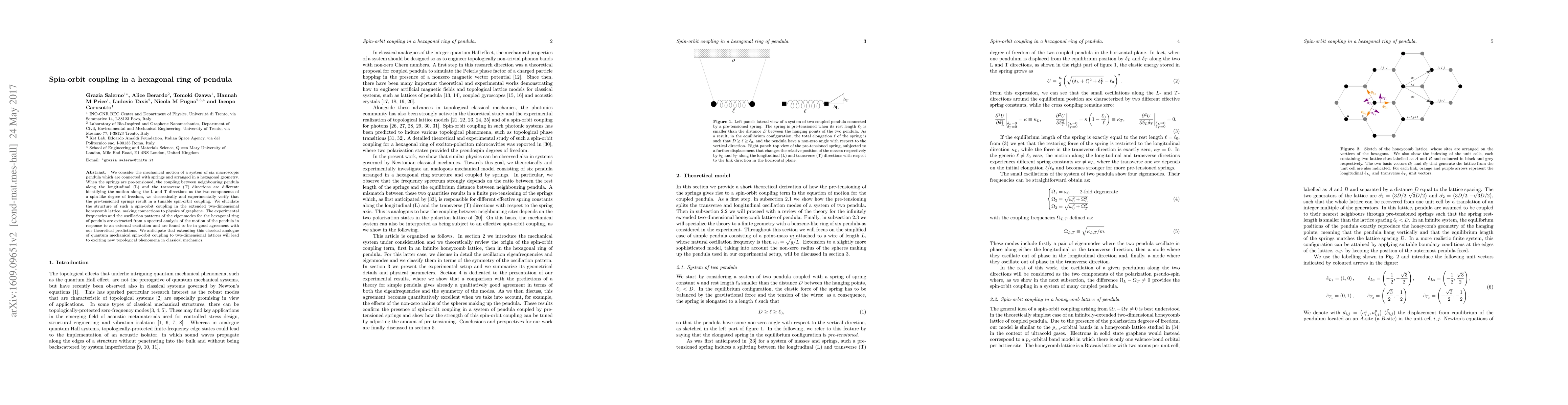 Researchers created a hexagonal ring of pendula with pre-tensioned springs to study spin-orbit coupling, finding it to be tunable and comparable to quantum mechanics. The findings suggest new topological phenomena in classical mechanics.