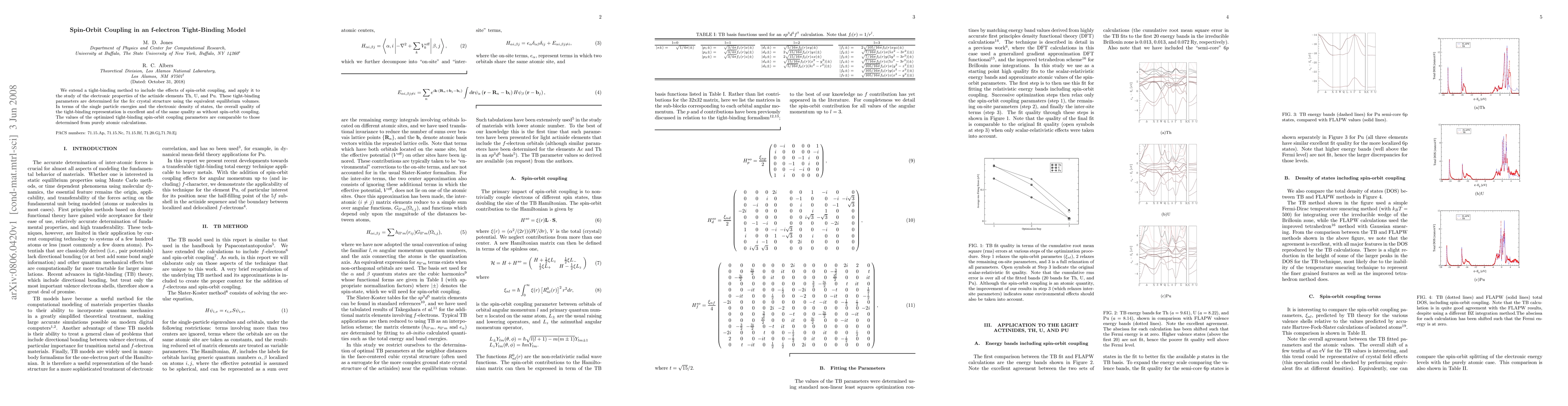 This paper extends a tight-binding model to incorporate spin-orbit coupling, applying it to actinide elements Th, U, and Pu. The model accurately represents electronic properties, with optimized parameters comparable to atomic calculations.