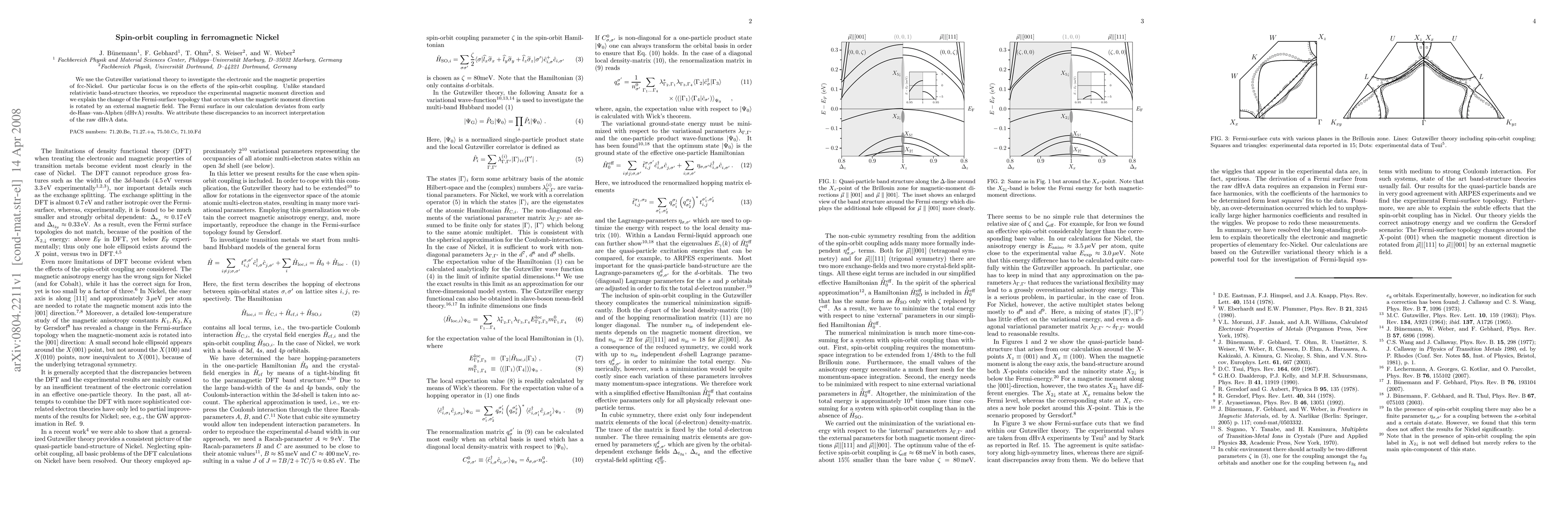 We use the Gutzwiller variational theory to investigate the electronic and the magnetic properties of fcc-Nickel. Our particular focus is on the effects of the spin-orbit coupling. Unlike standard relativistic band-structure theories, we reproduce the experimental magnetic moment direction and we explain the change of the Fermi-surface topology that occurs when the magnetic moment direction is rotated by an external magnetic field. The Fermi surface in our calculation deviates from early de-Haas--van-Alphen (dHvA) results. We attribute these discrepancies to an incorrect interpretation of the raw dHvA data.