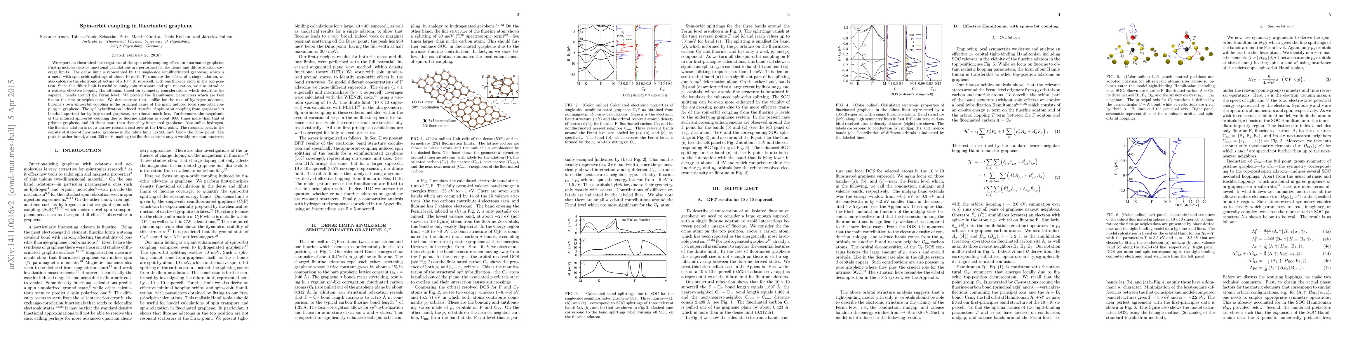 This paper investigates spin-orbit coupling in fluorinated graphene using density functional theory. It finds that fluorine adatoms induce a giant local spin-orbit coupling, significantly greater than that from hydrogen, primarily due to fluorine's inherent spin-orbit interaction rather than transfer from graphene.