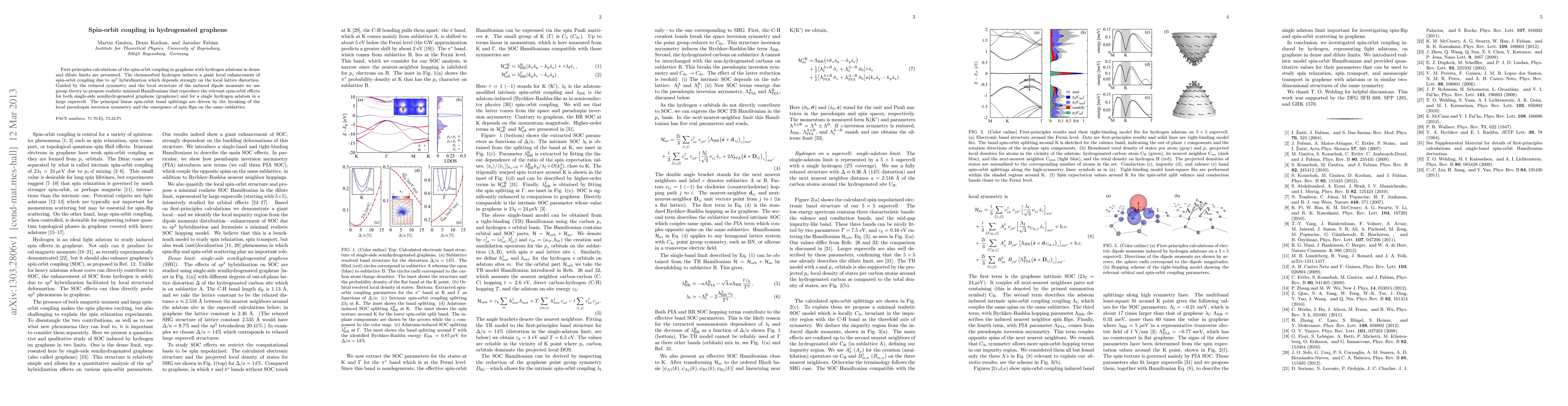 Summary: First-principles calculations reveal a significant enhancement in spin-orbit coupling in hydrogenated graphene due to $sp^3$ hybridization from chemisorbed hydrogen, influenced by local lattice distortions. Group theory is used to develop minimal Hamiltonians that accurately model spin-orbit effects in semihydrogenated graphene and isolated hydrogen adatoms, driven by symmetry breaking and spin flips.