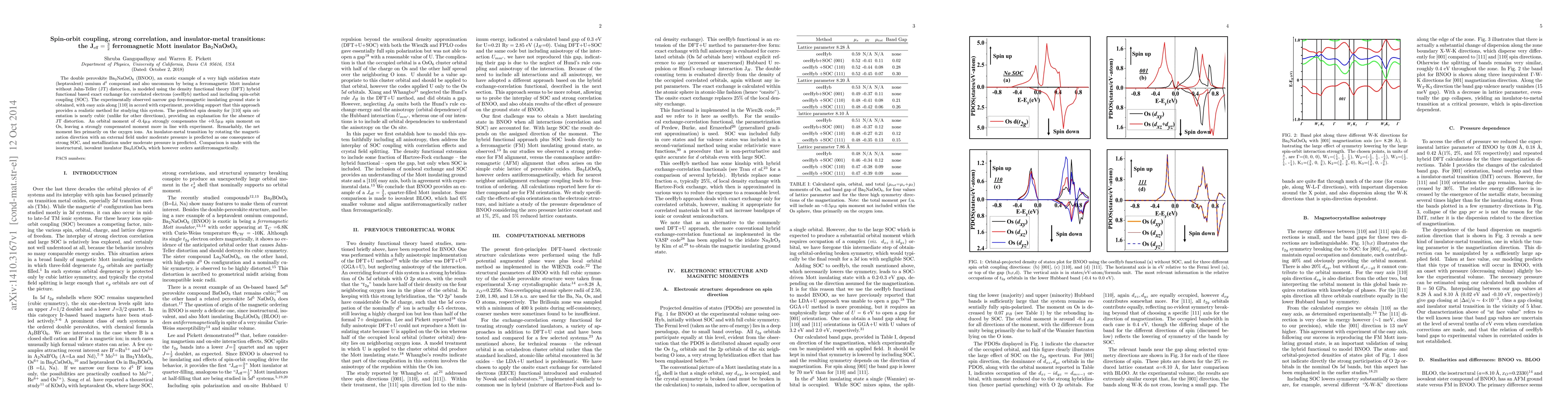 Researchers used DFT to model Ba2NaOsO6, a ferromagnetic Mott insulator with no JT distortion, predicting strong SOC, compensating moments, and an insulator-metal transition under pressure.