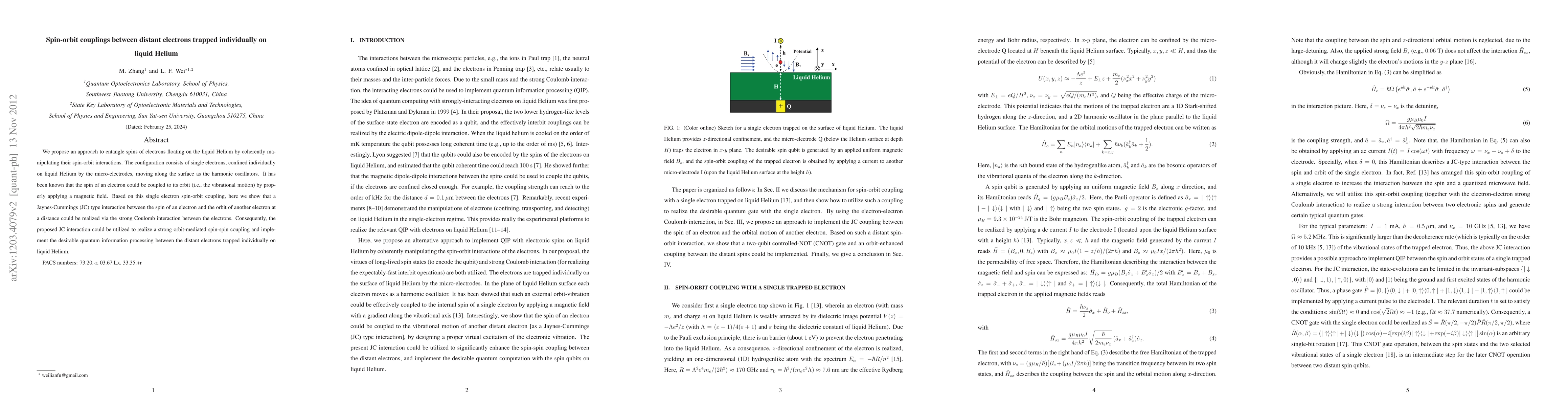 This paper proposes a method to entangle spins of electrons individually trapped on liquid helium using their spin-orbit interactions. It demonstrates a Jaynes-Cummings type interaction between distant electrons via Coulomb interaction, enabling quantum information processing.