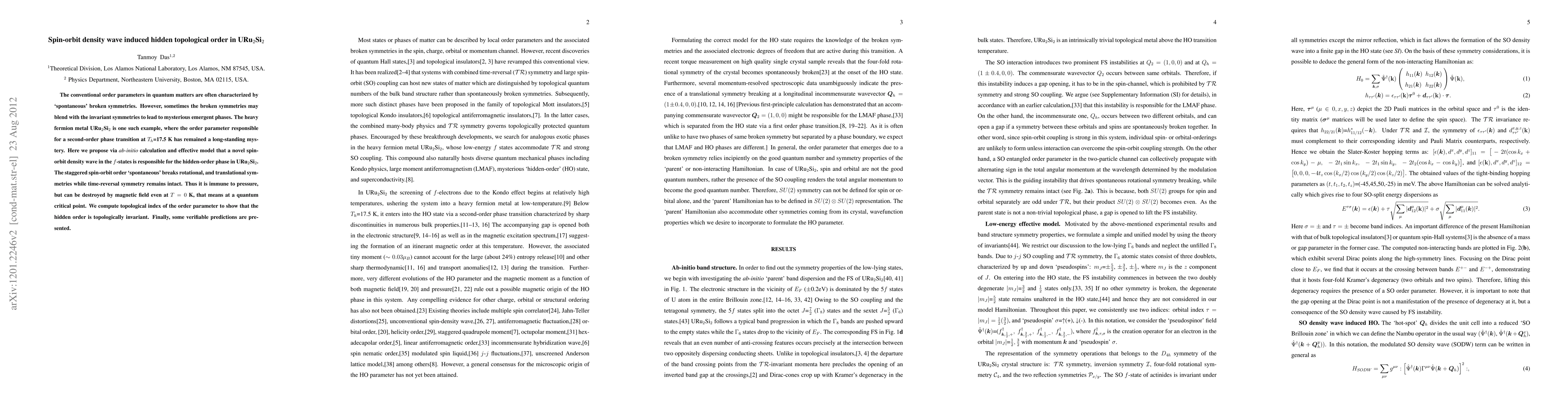 Researchers propose a novel spin-orbit density wave as the cause of hidden topological order in URu2Si2, a mysterious phase that remains immune to pressure but can be destroyed by magnetic fields at 0 K.