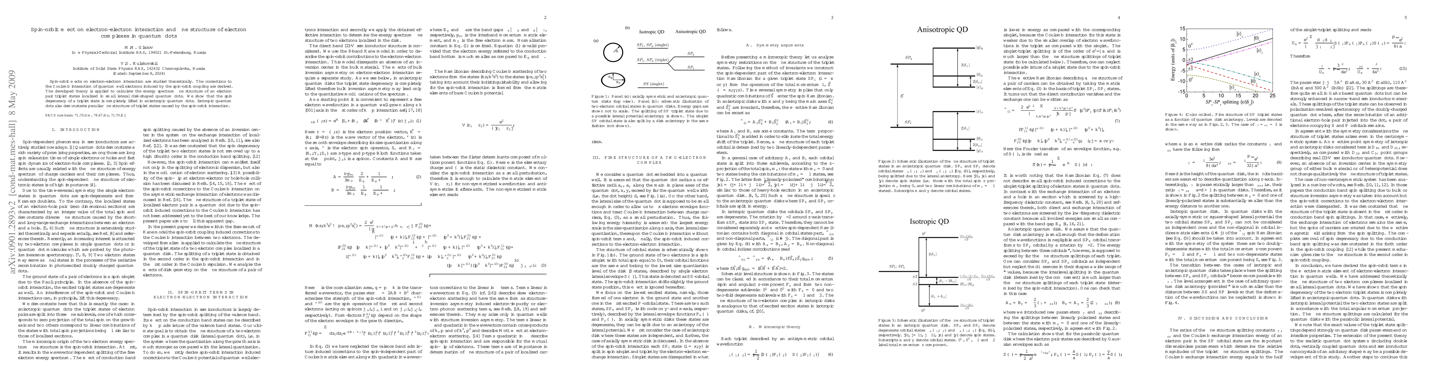 Spin-orbit effects on electron-electron interaction are studied theoretically. The corrections to the Coulomb interaction of quantum well electrons induced by the spin-orbit coupling are derived. The developed theory is applied to calculate the energy spectrum fine structure of an electron pair triplet states localized in small lateral disk-shaped quantum dots. We show that the spin degeneracy of a triplet state is completely lifted in anisotropic quantum dots. Isotropic quantum dots also demonstrate peculiar fine structure of triplet states caused by the spin-orbit interaction.