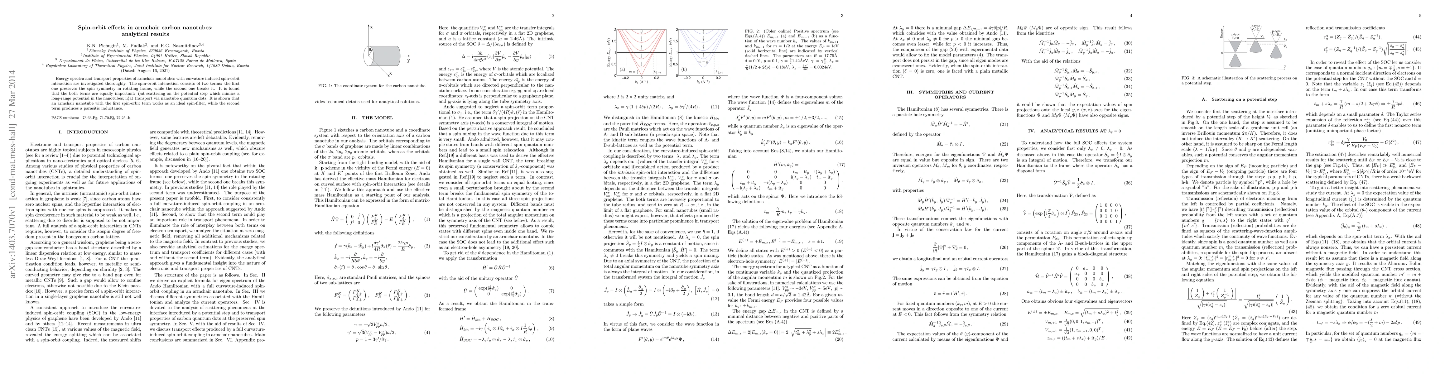 This paper investigates the energy spectra and transport properties of armchair carbon nanotubes with spin-orbit interactions, revealing that both interaction terms are crucial. The first term acts as an ideal spin-filter, while the second introduces parasitic inductance, affecting transport via quantum dots.