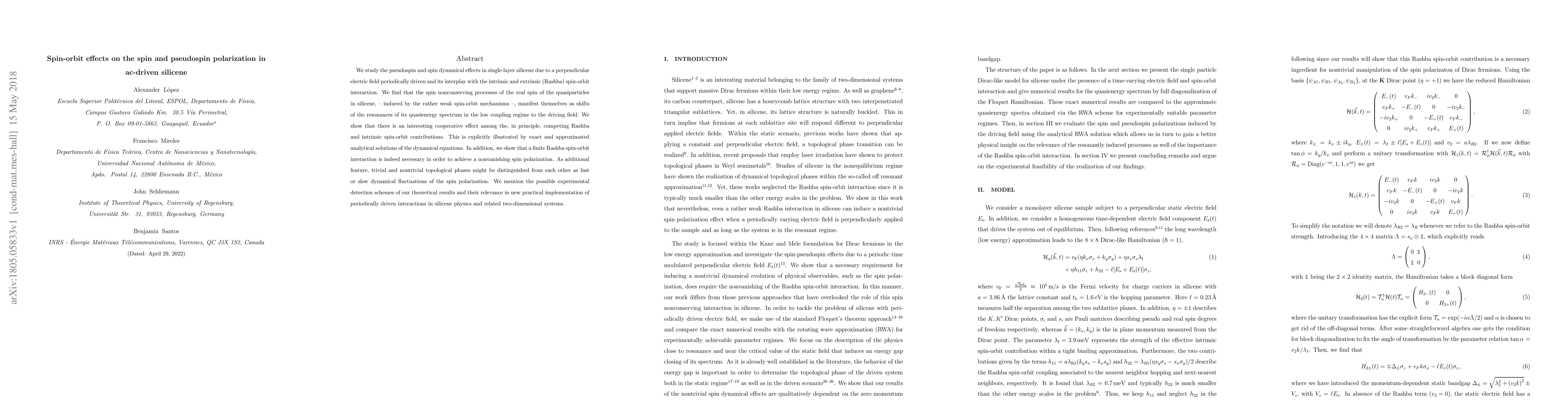 This paper investigates the interplay between spin-orbit interactions and pseudospin polarization in ac-driven silicene under a perpendicular electric field, revealing shifts in quasienergy spectrum due to spin nonconserving processes. It highlights the cooperative effect between intrinsic and Rashba spin-orbit interactions, necessary for nonvanishing spin polarization, and suggests methods for experimental detection.