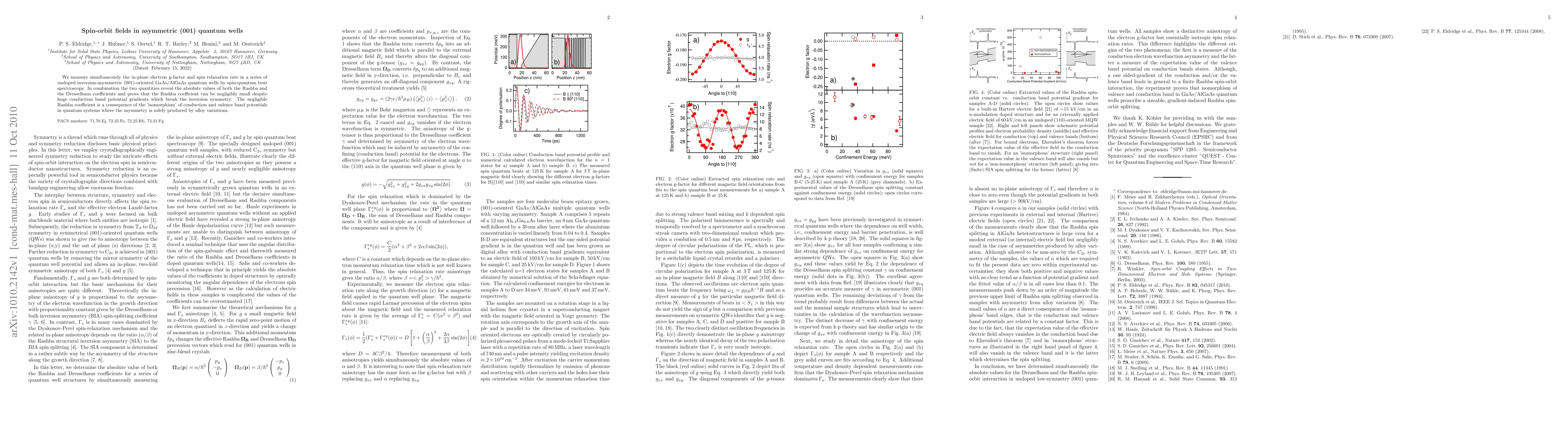 This study measures electron g-factor and spin relaxation in asymmetric GaAs/AlGaAs quantum wells, revealing the absolute values of Rashba and Dresselhaus coefficients. It demonstrates that the Rashba coefficient can be negligible despite significant conduction band potential gradients, due to the 'isomorphism' of conduction and valence band potentials in alloy-induced asymmetry.