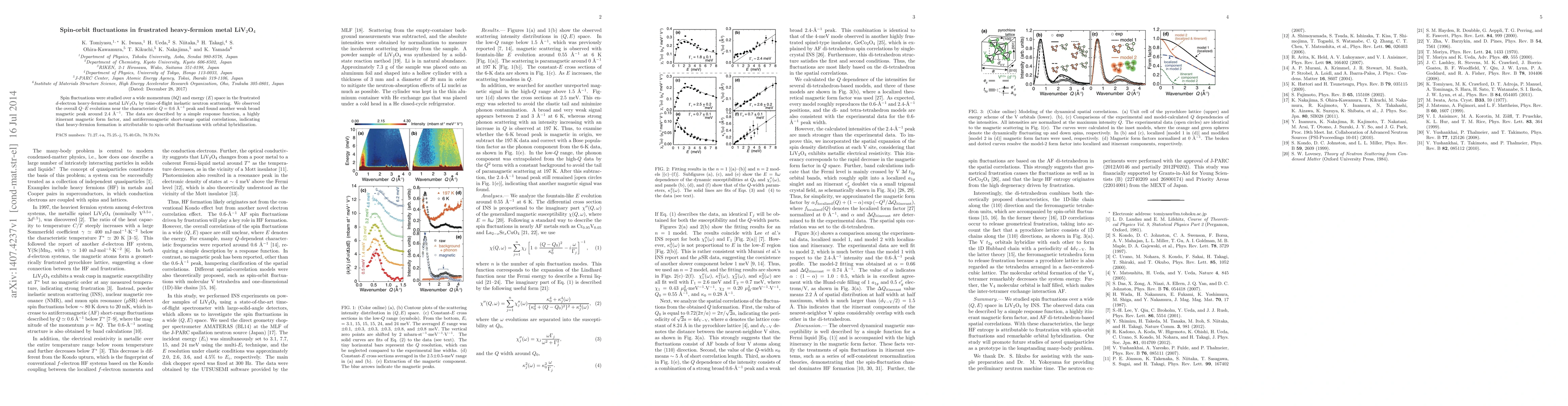 Researchers studied spin fluctuations in LiV$_2$O$_4$, a heavy-fermion metal, using time-of-flight inelastic neutron scattering. They found evidence of spin-orbit fluctuations leading to heavy-fermion formation.