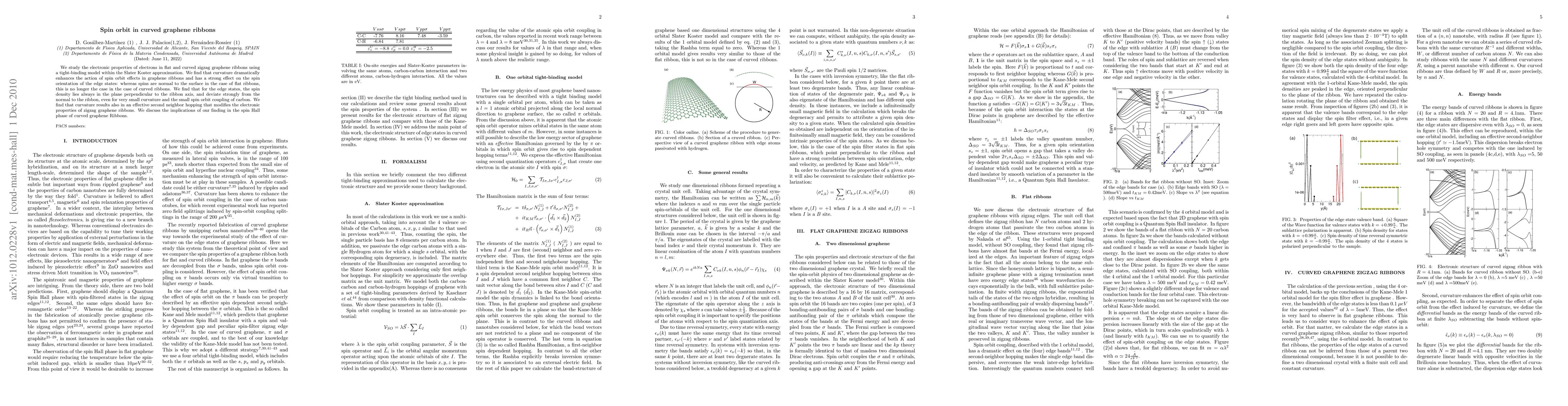 This research investigates the impact of curvature on the spin-orbit interaction in zigzag graphene ribbons using a tight-binding model, revealing that curvature enhances spin-orbit effects and alters edge state spin orientations from normal to the ribbon axis to planar. The study also finds effective second neighbor hopping due to curvature, influencing the electronic properties.