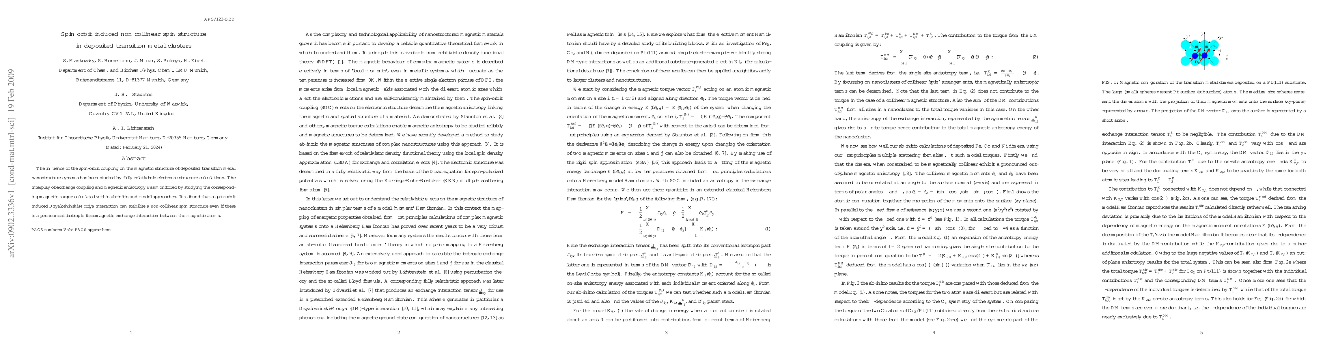 This study investigates how spin-orbit coupling affects magnetic structures in transition metal clusters, finding that it can stabilize non-collinear spin arrangements even with strong isotropic ferromagnetic interactions.