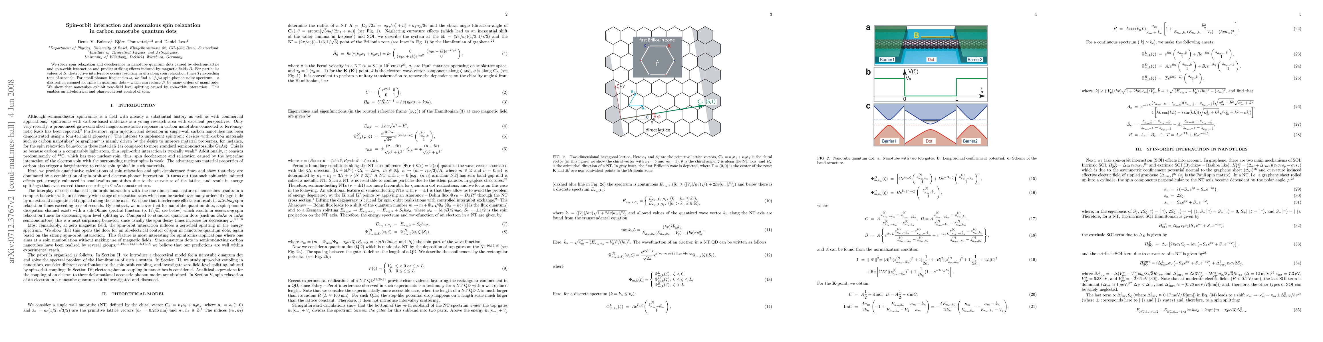 We study spin relaxation and decoherence caused by electron-lattice and spin-orbit interaction and predict striking effects induced by magnetic fields $B$. For particular values of $B$, destructive interference occurs resulting in ultralong spin relaxation times $T_1$ exceeding tens of seconds. For small phonon frequencies $\omega$, we find a $1/\sqrt{\omega}$ spin-phonon noise spectrum -- a novel dissipation channel for spins in quantum dots -- which can reduce $T_1$ by many orders of magnitude. We show that nanotubes exhibit zero-field level splitting caused by spin-orbit interaction. This enables an all-electrical and phase-coherent control of spin.