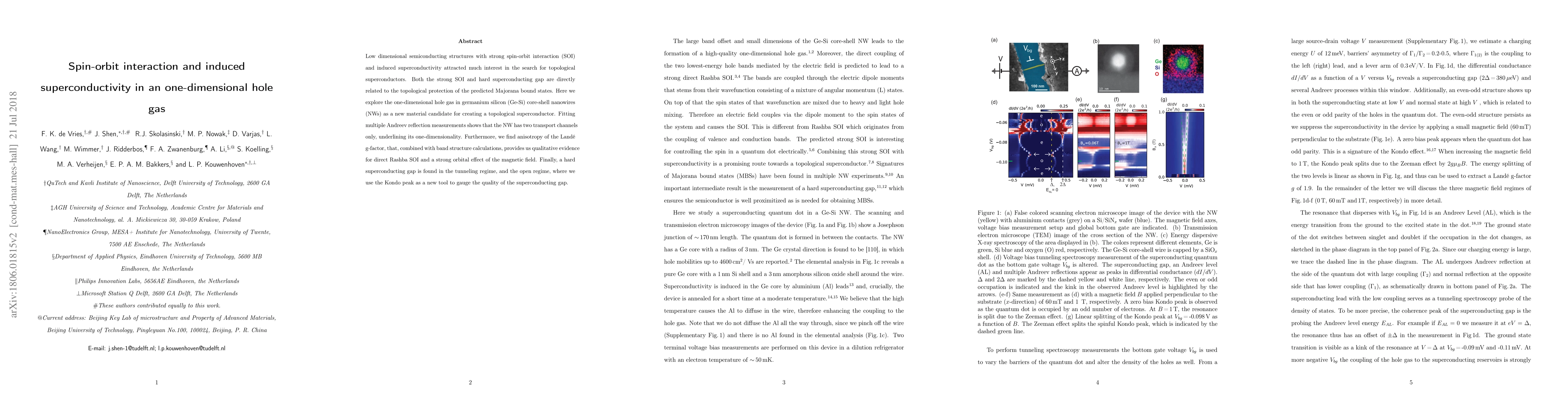 This paper investigates one-dimensional hole gas in germanium silicon core-shell nanowires for potential topological superconductivity, finding evidence of strong spin-orbit interaction and a hard superconducting gap, supported by measurements and calculations. The study uses Kondo peaks to assess the quality of the superconducting gap.