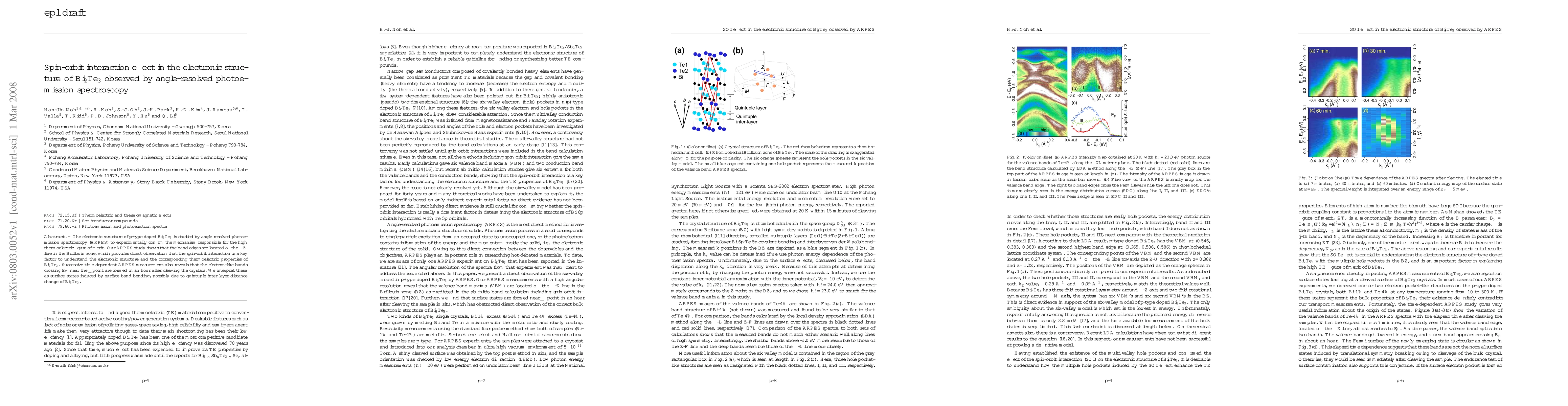 The electronic structure of $p$-type doped \BiTe is studied by angle resolved photoemission spectroscopy (ARPES) to experimentally confirm the mechanism responsible for the high thermoelectric figure of merit. Our ARPES study shows that the band edges are located off the $\Gamma$-Z line in the Brillouin zone, which provides direct observation that the spin-orbit interaction is a key factor to understand the electronic structure and the corresponding thermoelectric properties of \BiTe. Successive time dependent ARPES measurement also reveals that the electron-like bands crossing E$_F$ near the $\underline{\Gamma}$ point are formed in an hour after cleaving the crystals. We interpret these as surface states induced by surface band bending, possibly due to quintuple inter-layer distance change of \BiTe.
