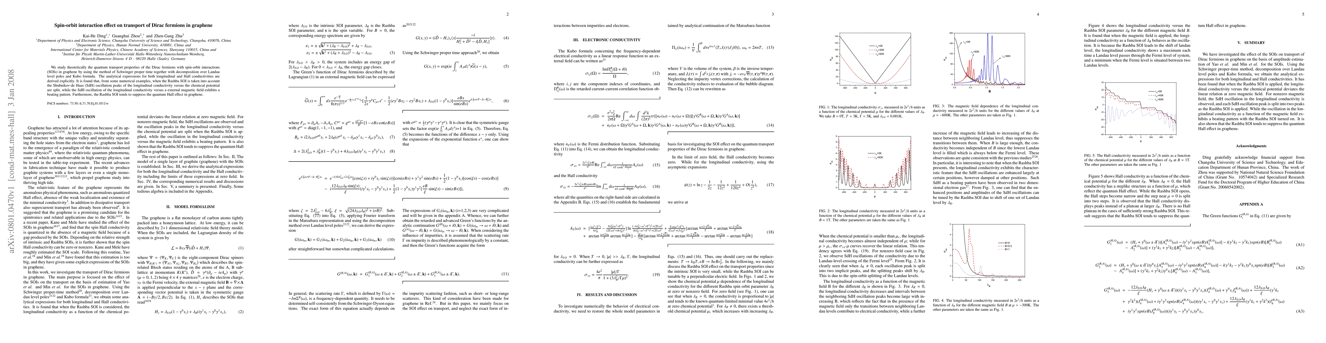 This paper theoretically investigates the quantum transport properties of Dirac fermions in graphene with spin-orbit interactions, revealing that Rashba SOI splits Shubnikov-de Haas oscillation peaks and suppresses the quantum Hall effect, using the Schwinger proper time method and Kubo formula.