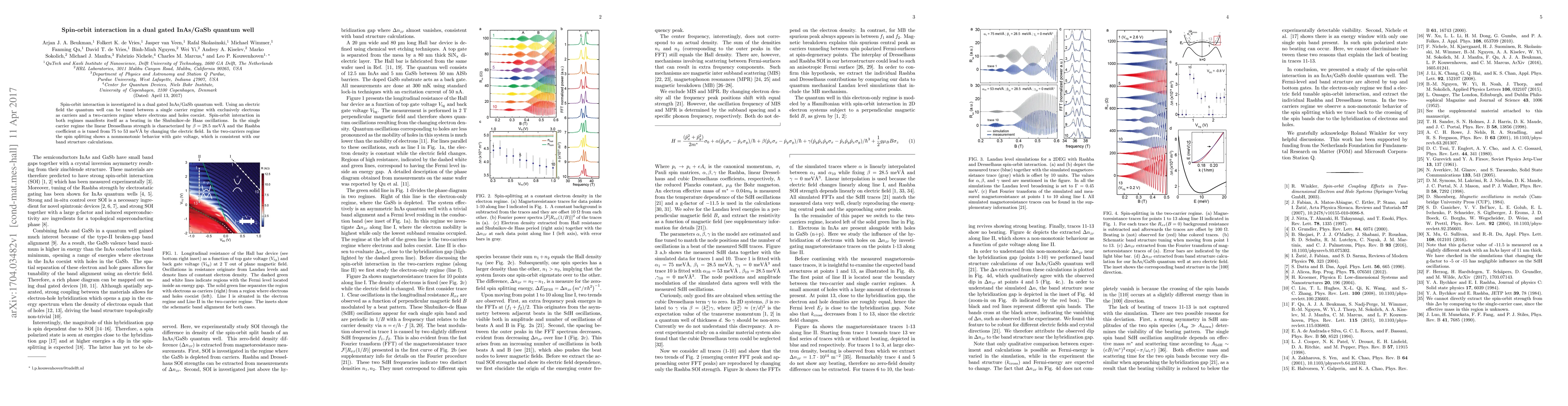 This research examines spin-orbit interaction in a dual-gated InAs/GaSb quantum well, revealing a tunable Rashba coefficient and nonmonotonic spin splitting in a two-carrier regime, with implications for spintronics and quantum computing.