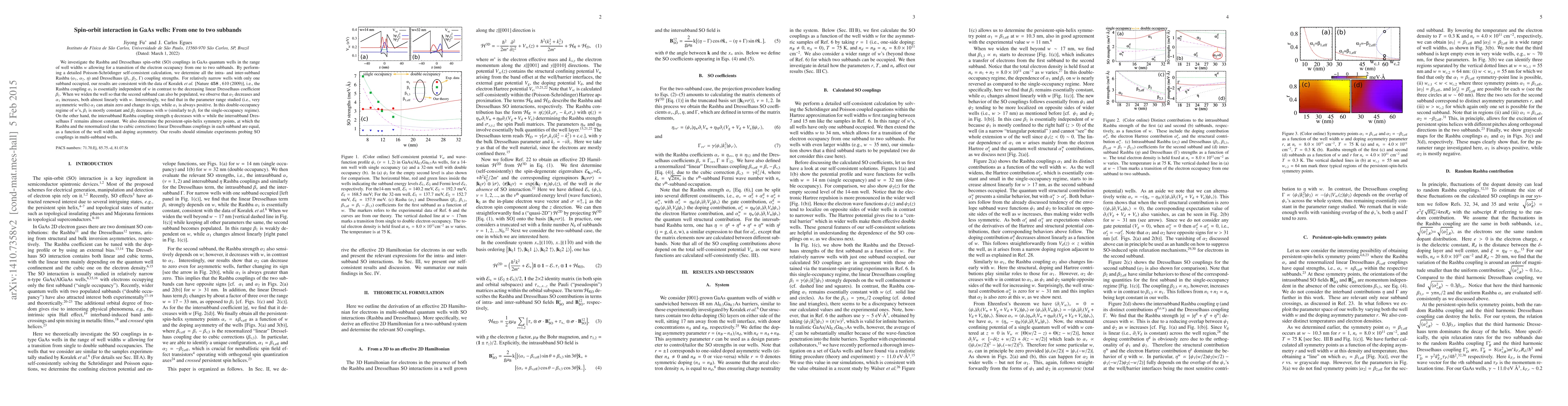 We investigate the Rashba and Dresselhaus spin-orbit (SO) couplings in GaAs quantum wells in the range of well widths $w$ allowing for a transition of the electron occupancy from one to two subbands. By performing a detailed Poisson-Schr\"odinger self-consistent calculation, we determine all the intra- and inter-subband Rashba ($\alpha_1$, $\alpha_2$, $\eta$) and Dresselhaus ($\beta_1$, $\beta_2$, $\Gamma$) coupling strengths. For relatively narrow wells with only one subband occupied, our results are consistent with the data of Koralek \emph{et al.} [Nature \bfs{48}, 610 (2009)], i.e., the Rashba coupling $\alpha_1$ is essentially independent of $w$ in contrast to the decreasing linear Dresselhaus coefficient $\beta_1$. When we widen the well so that the second subband can also be populated, we observe that $\alpha_2$ decreases and $\alpha_1$ increases, both almost linearly with $w$. Interestingly, we find that in the parameter range studied (i.e., very asymmetric wells) $\alpha_2$ can attain zero and change its sign, while $\alpha_1$ is always positive. In this double-occupancy regime of $w$'s, $\beta_1$ is mostly constant and $\beta_2$ decreases with $w$ (similarly to $\beta_1$ for the single-occupancy regime). On the other hand, the intersubband Rashba coupling strength $\eta$ decreases with $w$ while the intersubband Dresselhaus $\Gamma$ remains almost constant. We also determine the persistent-spin-helix symmetry points, at which the Rashba and the renormalized (due to cubic corrections) linear Dresselhaus couplings in each subband are equal, as a function of the well width and doping asymmetry. Our results should stimulate experiments probing SO couplings in multi-subband wells.