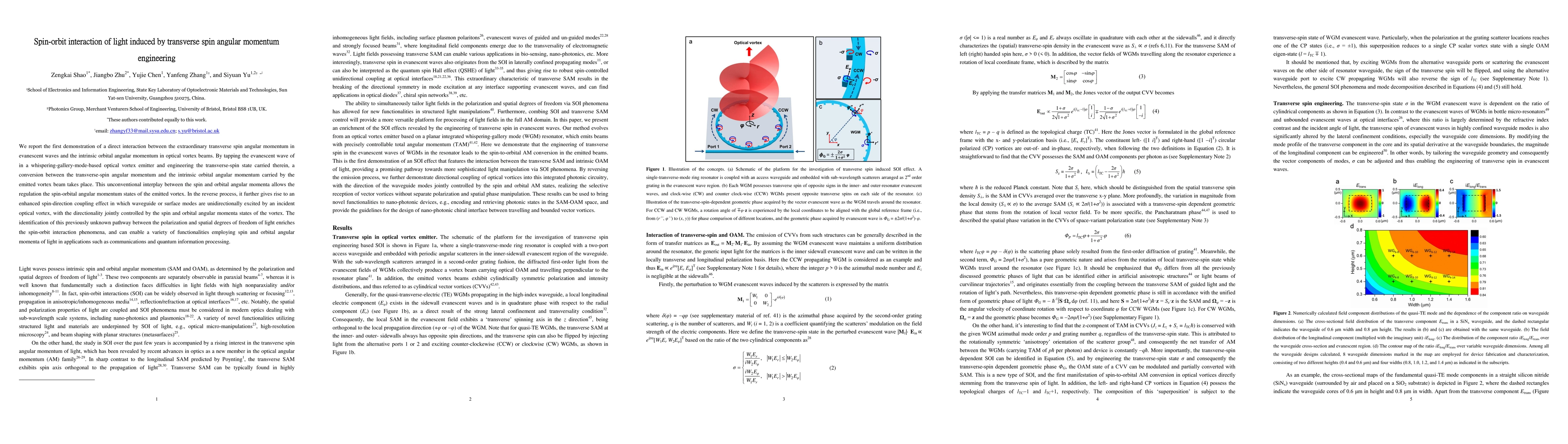 This paper demonstrates a novel interaction between transverse spin angular momentum in evanescent waves and orbital angular momentum in optical vortex beams, predicting a spin-to-orbital conversion in emitted vortex beams. The findings reveal new pathways for manipulating light's angular momentum and could enhance functionalities in communications and quantum information processing.