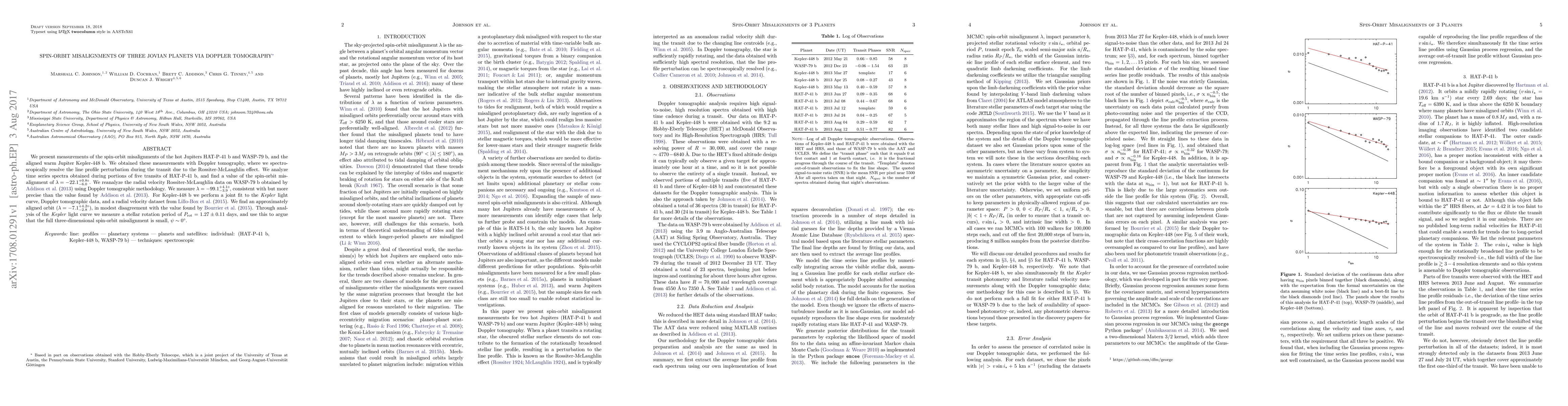 Researchers measured spin-orbit misalignments of three Jupiter planets using Doppler tomography, finding misalignments of -22.1 to -99.1 degrees for HAT-P-41 b and WASP-79 b, respectively, and a nearly aligned orbit for Kepler-448 b.