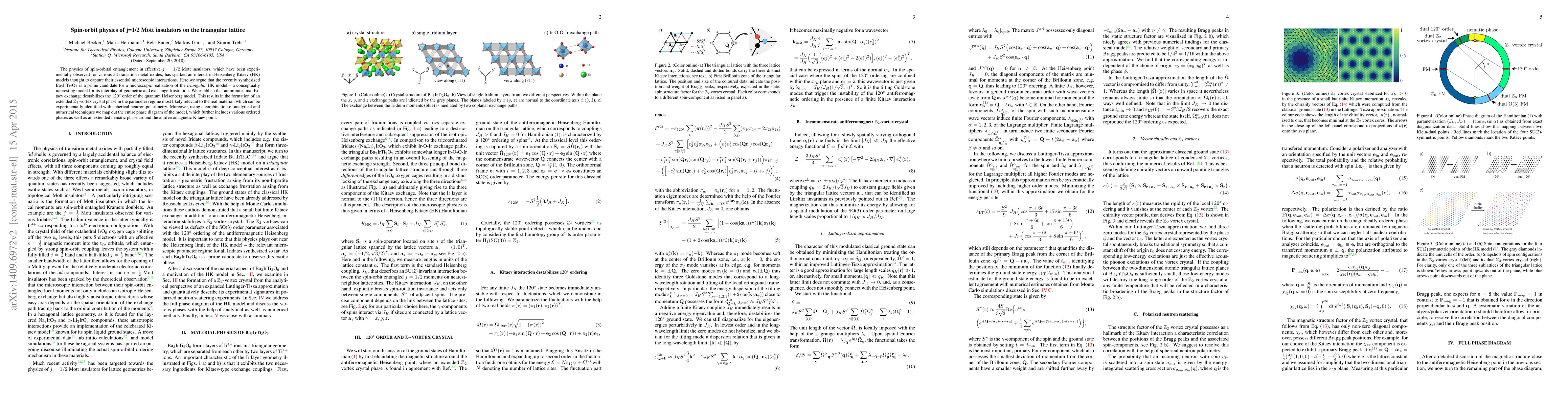 The Heisenberg-Kitaev (HK) model on the triangular lattice is conceptually interesting for its interplay of geometric and exchange frustration. HK models are also thought to capture the essential physics of the spin-orbital entanglement in effective $j=1/2$ Mott insulators studied in the context of various 5d transition metal oxides. Here we argue that the recently synthesized Ba$_3$IrTi$_2$O$_9$ is a prime candidate for a microscopic realization of the triangular HK model. We establish that an infinitesimal Kitaev exchange destabilizes the 120$^\circ$ order of the quantum Heisenberg model and results in the formation of an extended $\mathbb{Z}_2$-vortex crystal phase in the parameter regime most likely relevant to the real material. Using a combination of analytical and numerical techniques we map out the entire phase diagram of the model, which further includes various ordered phases as well as an extended nematic phase around the antiferromagnetic Kitaev point.