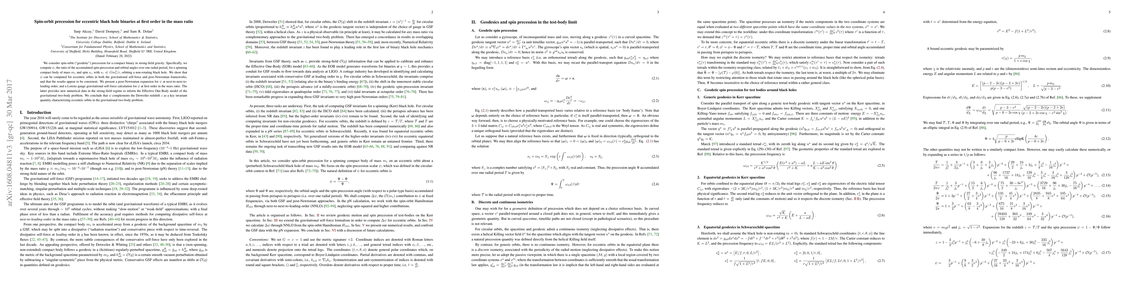 We consider spin-orbit ("geodetic") precession for a compact binary in strong-field gravity. Specifically, we compute $\psi$, the ratio of the accumulated spin-precession and orbital angles over one radial period, for a spinning compact body of mass $m_1$ and spin $s_1$, with $s_1 \ll G m_1^2/c$, orbiting a non-rotating black hole. We show that $\psi$ can be computed for eccentric orbits in both the gravitational self-force and post-Newtonian frameworks, and that the results appear to be consistent. We present a post-Newtonian expansion for $\psi$ at next-to-next-to-leading order, and a Lorenz-gauge gravitational self-force calculation for $\psi$ at first order in the mass ratio. The latter provides new numerical data in the strong-field regime to inform the Effective One-Body model of the gravitational two-body problem. We conclude that $\psi$ complements the Detweiler redshift $z$ as a key invariant quantity characterizing eccentric orbits in the gravitational two-body problem.