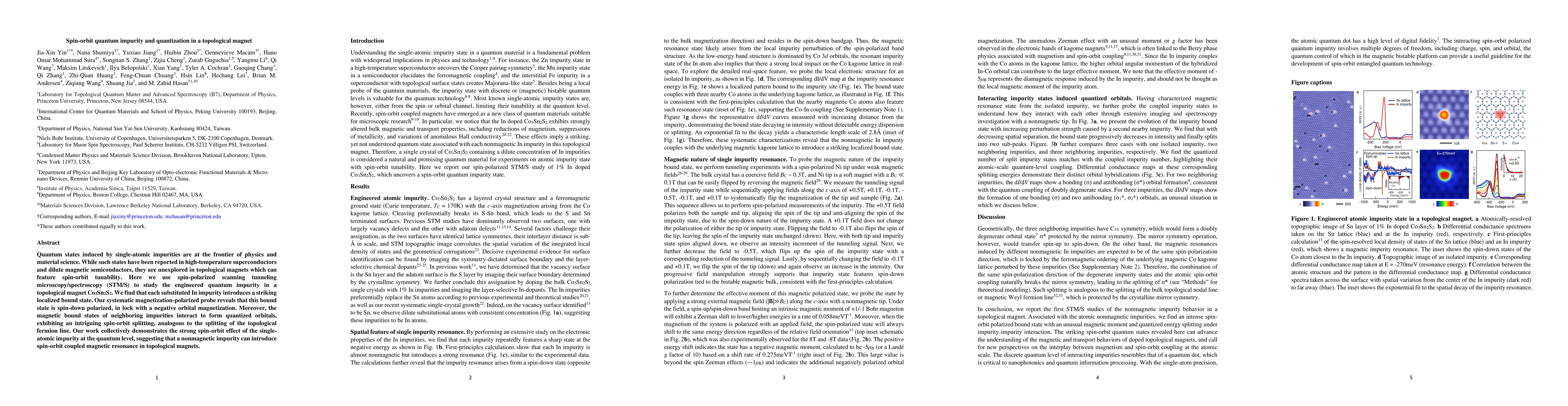 This study employs spin-polarized scanning tunneling microscopy to investigate single-atomic impurities in the topological magnet Co3Sn2S2, revealing localized spin-down bound states and spin-orbit coupled magnetic resonance. The research highlights the interaction of magnetic bound states to form quantized orbitals, showcasing the strong spin-orbit effect in topological magnets.