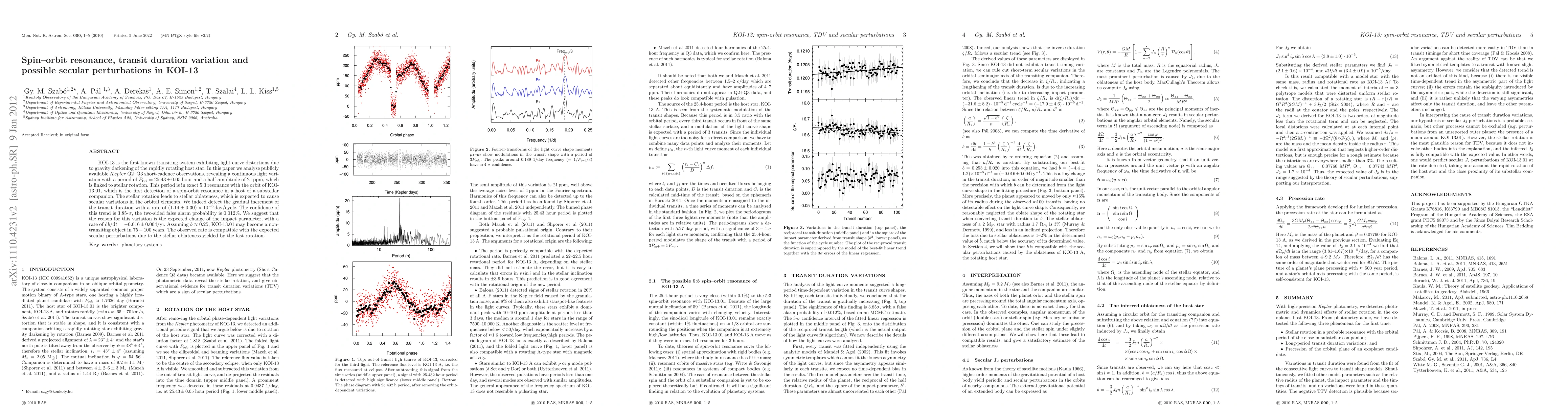 This paper analyzes Kepler observations of KOI-13, revealing a spin-orbit resonance between the host star's rotation period and the planet's orbit, and detects a gradual increase in transit duration due to stellar oblateness caused by the star's rapid rotation. The findings suggest KOI-13.01 may cease to transit in 75-100 years.
