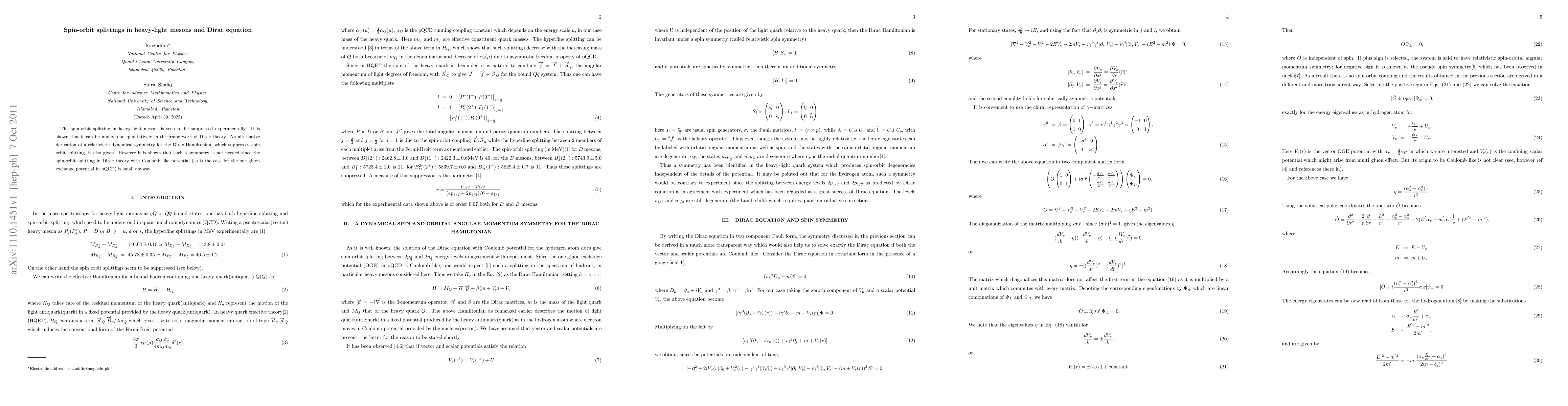 This paper explores the suppression of spin-orbit splitting in heavy-light mesons, demonstrating that it aligns with Dirac theory predictions. It also presents an alternative derivation of a relativistic symmetry that would suppress spin-orbit splitting, but concludes that such symmetry is unnecessary due to the inherently small spin-orbit splitting in Dirac theory under Coulomb-like potentials.