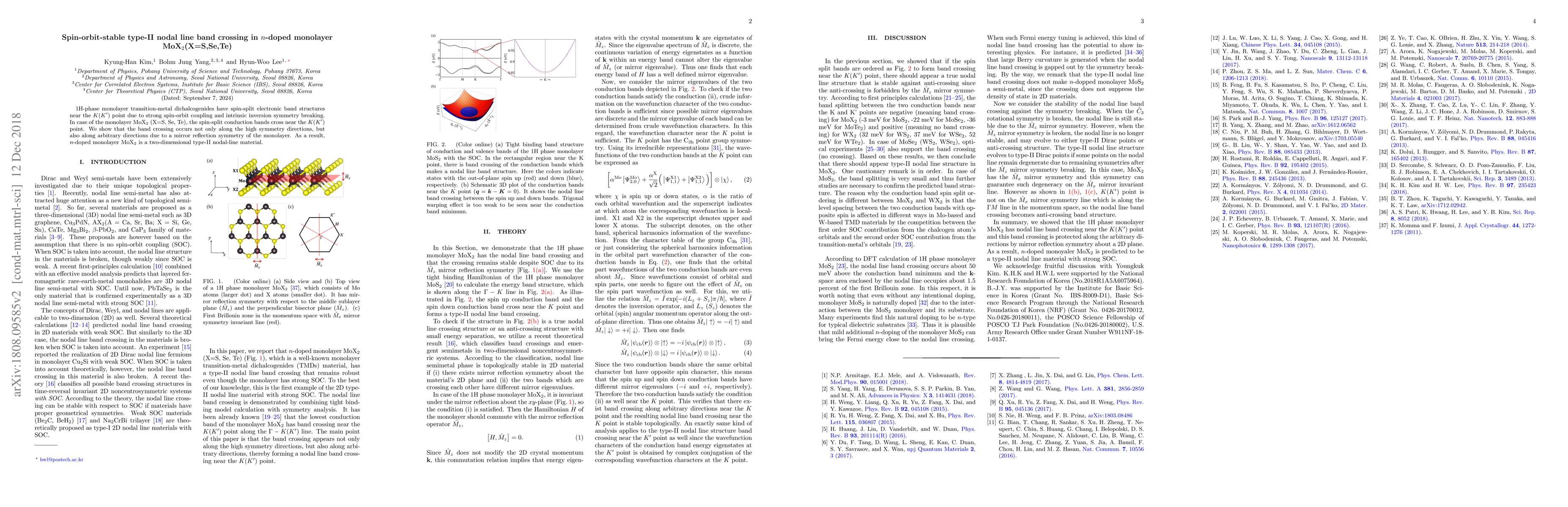 This paper investigates spin-orbit-stable type-II nodal line band crossing in n-doped monolayer MoX2 (X=S,Se,Te), revealing that the spin-split conduction bands intersect not only along high symmetry but also arbitrary directions due to mirror reflection symmetry, classifying it as a two-dimensional nodal-line material.