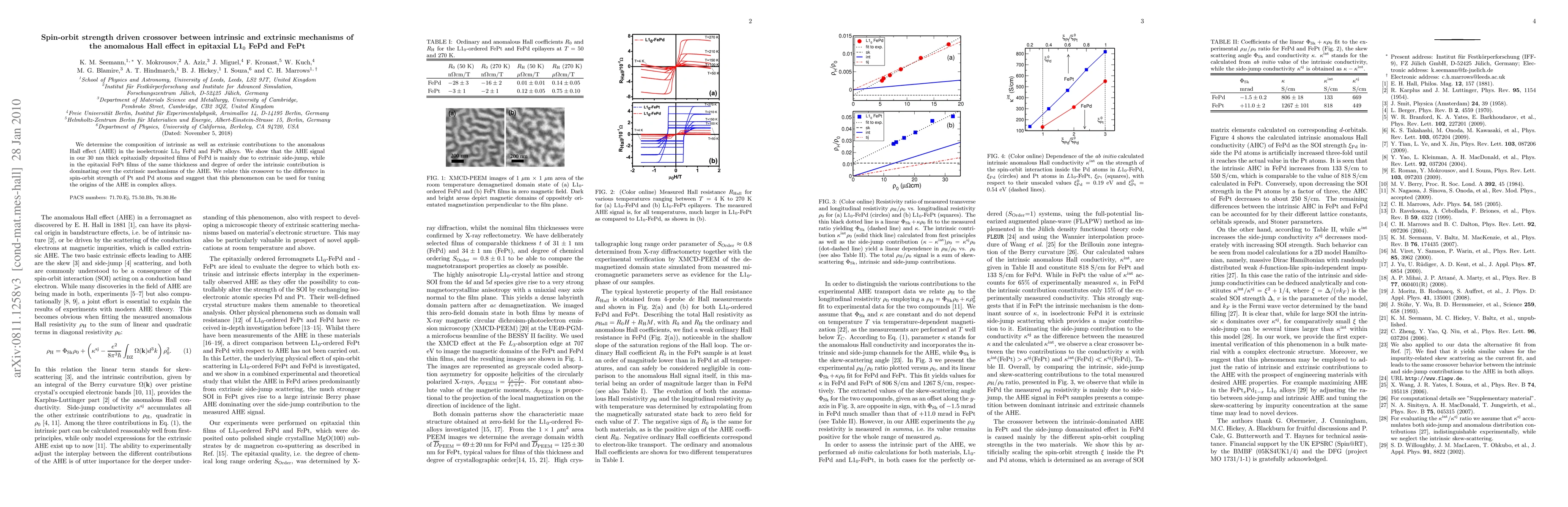 We determine the composition of intrinsic as well as extrinsic contributions to the anomalous Hall effect (AHE) in the isoelectronic L1o FePd and FePt alloys. We show that the AHE signal in our 30 nm thick epitaxially deposited films of FePd is mainly due to extrinsic side-jump, while in the epitaxial FePt films of the same thickness and degree of order the intrinsic contribution is dominating over the extrinsic mechanisms of the AHE. We relate this crossover to the difference in spin-orbit strength of Pt and Pd atoms and suggest that this phenomenon can be used for tuning the origins of the AHE in complex alloys.