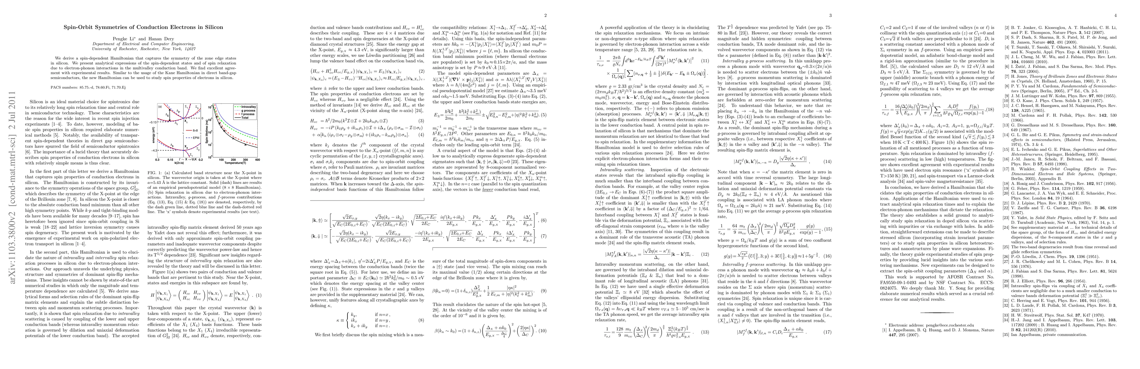 The research derives a spin-dependent Hamiltonian for silicon capturing the symmetry of zone-edge states, presenting analytical expressions for spin-dependent states and spin relaxation due to electron-phonon interactions in the multivalley conduction band.