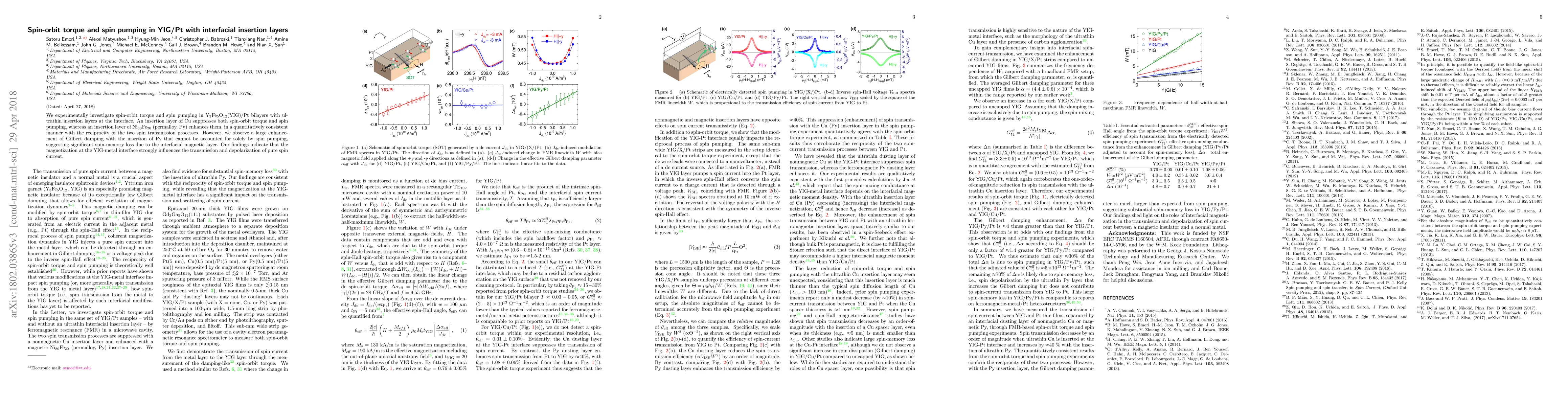 This study experimentally explores spin-orbit torque and spin pumping in YIG/Pt bilayers with ultrathin insertion layers, finding that Cu reduces both effects while Ni80Fe20 enhances them, despite Py insertion causing unexpected Gilbert damping, indicating substantial spin-memory loss.